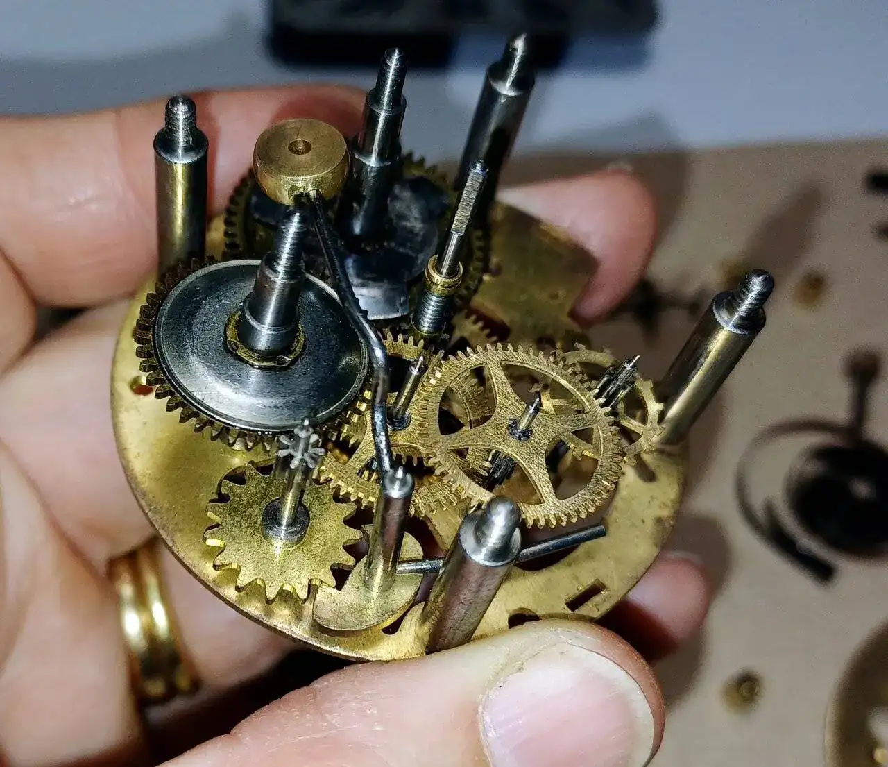 Hola, estoy limpiando este reloj del que solo sé que se compró hace años en un mercadillo de Francia. No he visto ninguna marca en ninguna parte. ¿Sabéis quien pudo ser el fabricante del mecanismo y de la caja de mármol? Muchas gracias por vuestra ayuda.