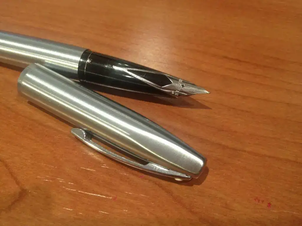 El motivo de este post es que a raíz de que hace un par de semanas apareciera por sorpresa en el fondo de un cajón una pluma Sheaffer, me he decidido a darle una oportunidad a este tipo de escritura. Desconozco el modelo y el grosor del plumín que incorpora por lo que solicito a los entendidos en el tema su ayuda para tratar de identificarla.