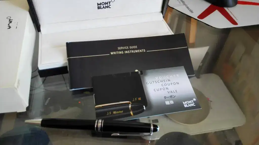 Nada de titanio, es un chapado en platino (rodio en realidad). Es un bolígrafo de la serie Meisterstück; no hay nada para comparar el tamaño, pero parece el más pequeño, el que hace juego con la estilográfica 144.