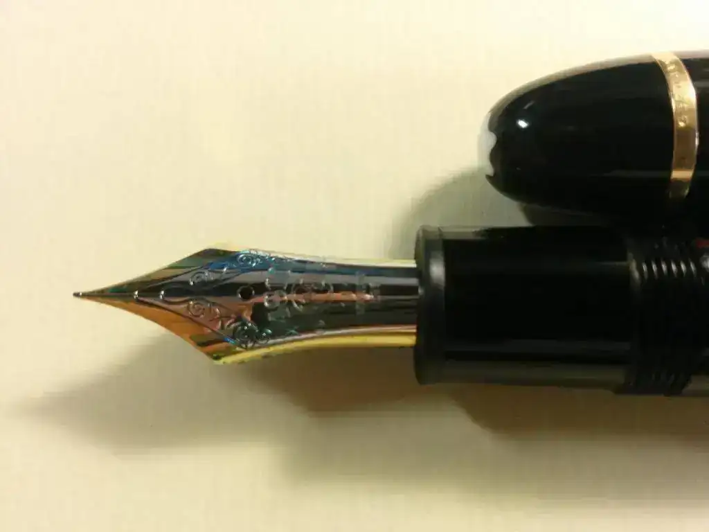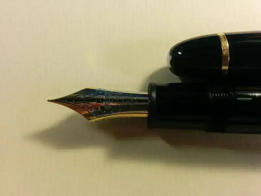 me ha regalado una persona muy especial una pluma Montblanc 149, y me ha surgido una duda. Por lo que habéis comentado otras veces, el flujo de las Montblanc, al igual que las Pelikan, suelen ser más anchos que los de otros. Lo que ocurre es que esta pluma es supuestamente un EF y escribe más ancho que los F de otras plumas que tengo. No viene ninguna marca en la pluma y tampoco traía la pegatina que suele llevar. Pero lo que más me ha llamado la atención, y perdonad mi ignorancia, es la forma que tiene la punta del plumín. No se si está doblada, pero es como si la bolita (perdonad mi lenguaje tan técnico) en vez de estar por debajo, como en todas las plumas que tengo, estuviera por arriba... Las fotos las he hecho con el móvil y se ven bastante regular, pero en las que está de lado se puede apreciar eso que explico. Está bien el plumín?, es así como debe estar? Cómo podría realmente saber el tamaño del plumín? He leído en otros post que si no viene con la pegatina ni con la caja original sólo se puede hacer por comparación con otras con el mismo tipo de plumín, pero si no conozco a nadie con esa pluma y plumín, me lo podría mirar la casa Montblanc? Saldría muy caro que sólo me miraran eso? Y la última, sería muy costoso cambiar el plumín, si realmente fuera otro, por un EF? Muchas gracias a todos, es un regalo y me jodería bastante que le hubieran tomado el pelo a mi hermano.