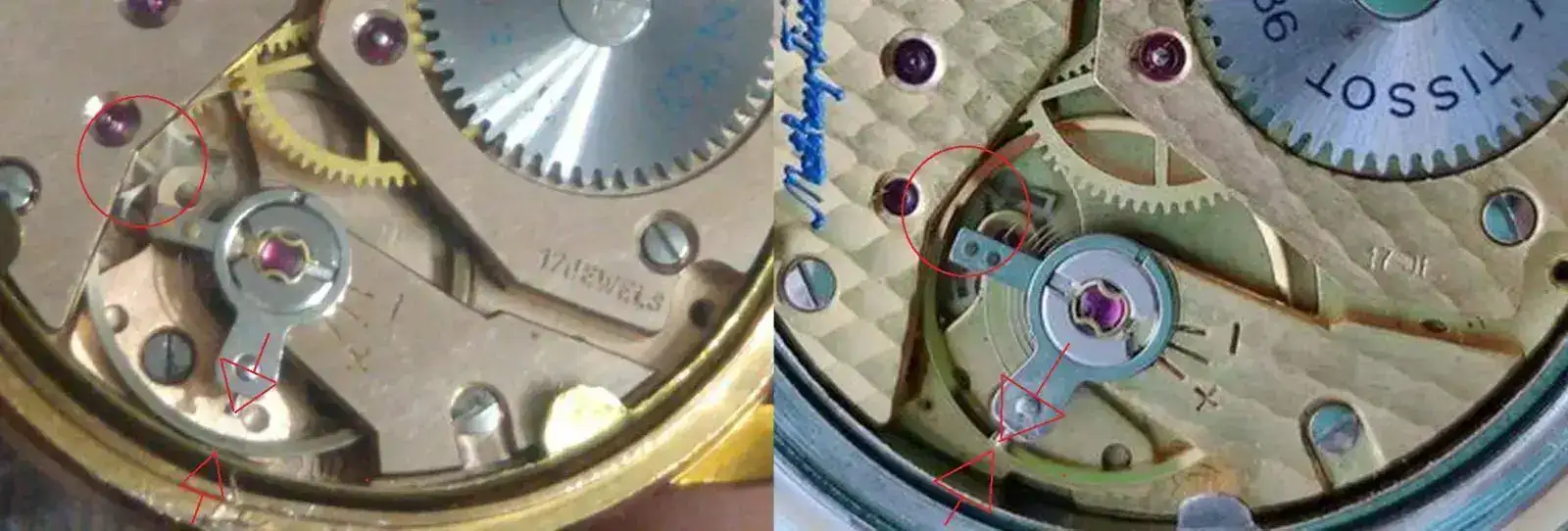 ebauche y lo completara con el conjunto de volante - escape de otro fabricante indeterminado en aras de economizar, así la máquina sería la original del reloj. Luego posteriormente, más tarde del año 2000 cuando se comenzó a pintar letras en las ruedas