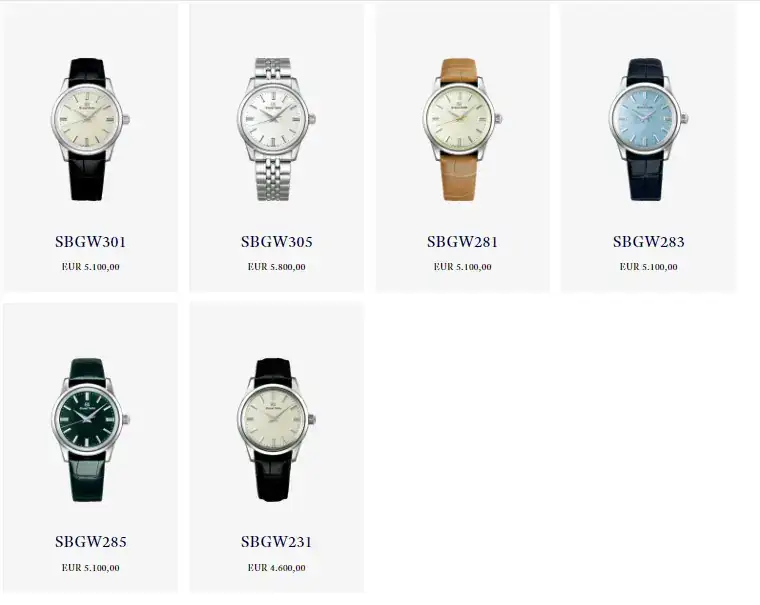 Preciosas opciones pero no quiere Seiko. El 283 azulino es desde luego diferenciado. Da para pajaUn Grand Seiko Elegance con calibre de cuerda manual (9S64). Las cajas son de 36-38 mm y hay variedad de colores.