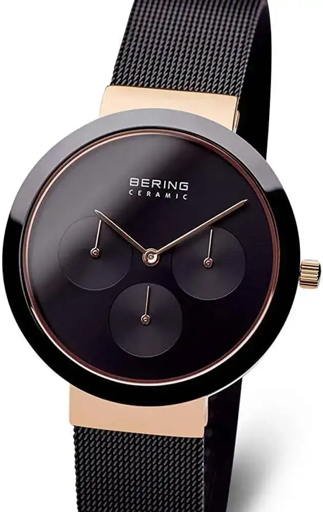 Aquí vienen mis dudas, el BERING es el modelo Bering 35036-166 en color azulito verdoso y dorado. Como lo compre un poco a la desesperación no pude ver lo que realmente tenía hasta que llegue a casa e investigar un poco. La primera pega fue que veo que en los que me salen en internet ponen en la esfera "ceramic" y en el mío no lo pone, entonces ya desconozco de si el mío es igual o no. La segunda pega es que resulta que aparece en la sección de hombre en la página del el CI y no en la de mujer , ahí me quede muy loco