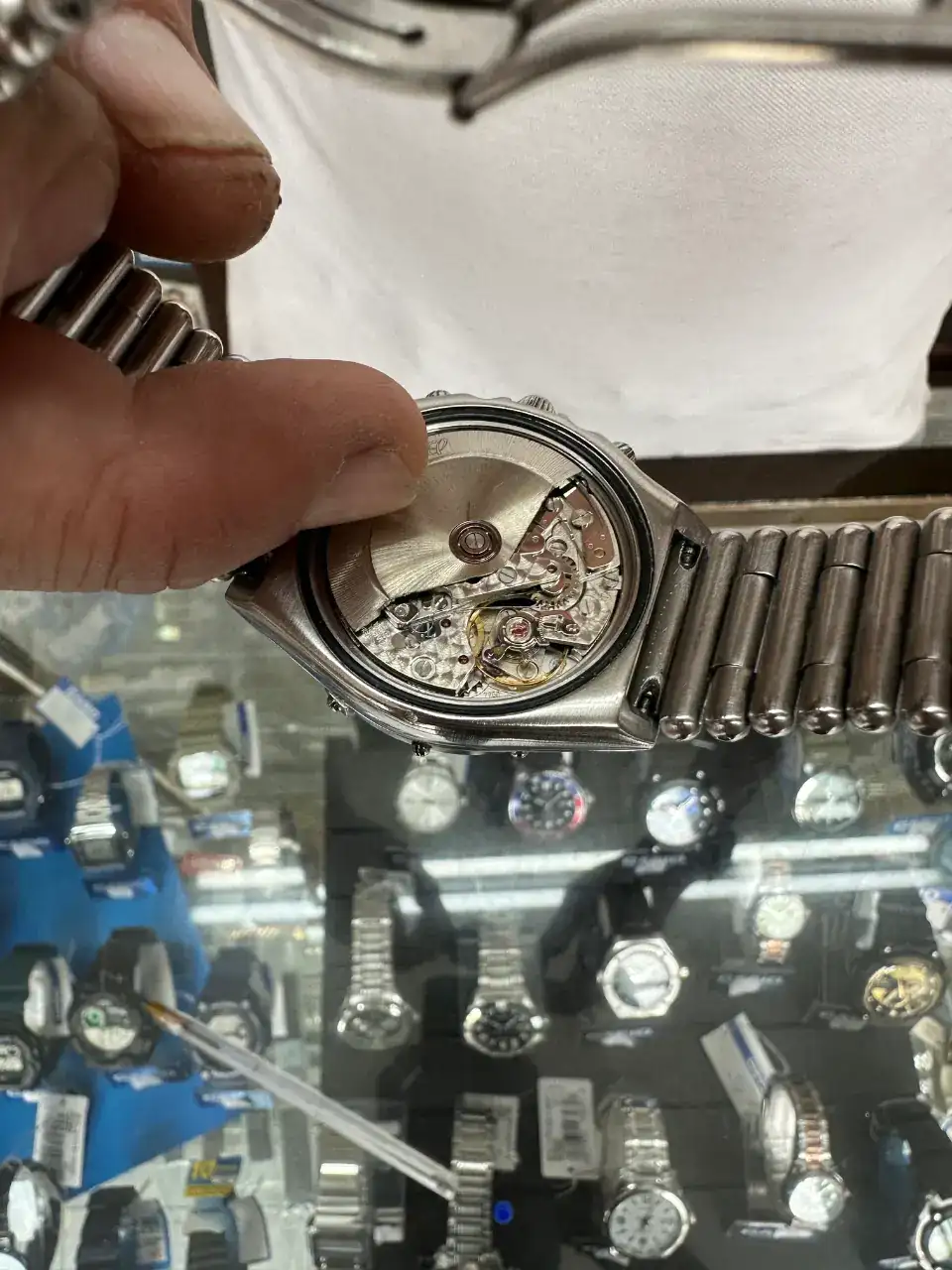 Hoy he llevado mi Breitling Chronomat 81950 a la relojería a revisar que las juntas estuviesen bien para poder estar seguro de que sigue hermético. Pues tras abrir el reloj, ver que las juntas están bien, y meterlo en la máquina de presión, al salir de la relojería, me doy cuenta que el botón del cronómetro funciona pero el de reseteo no.