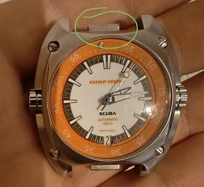 El reloj lo adquiri sin correa, y lo peor sin informarme demasiado. Y el problema, es que no hay forma de encontrar correas para este reloj y ni siquiera se me ocurre como adaptarle una, puesto que lleva un tipo de correa que nunca habia visto.....y el problema, es lo que marco en la foto: