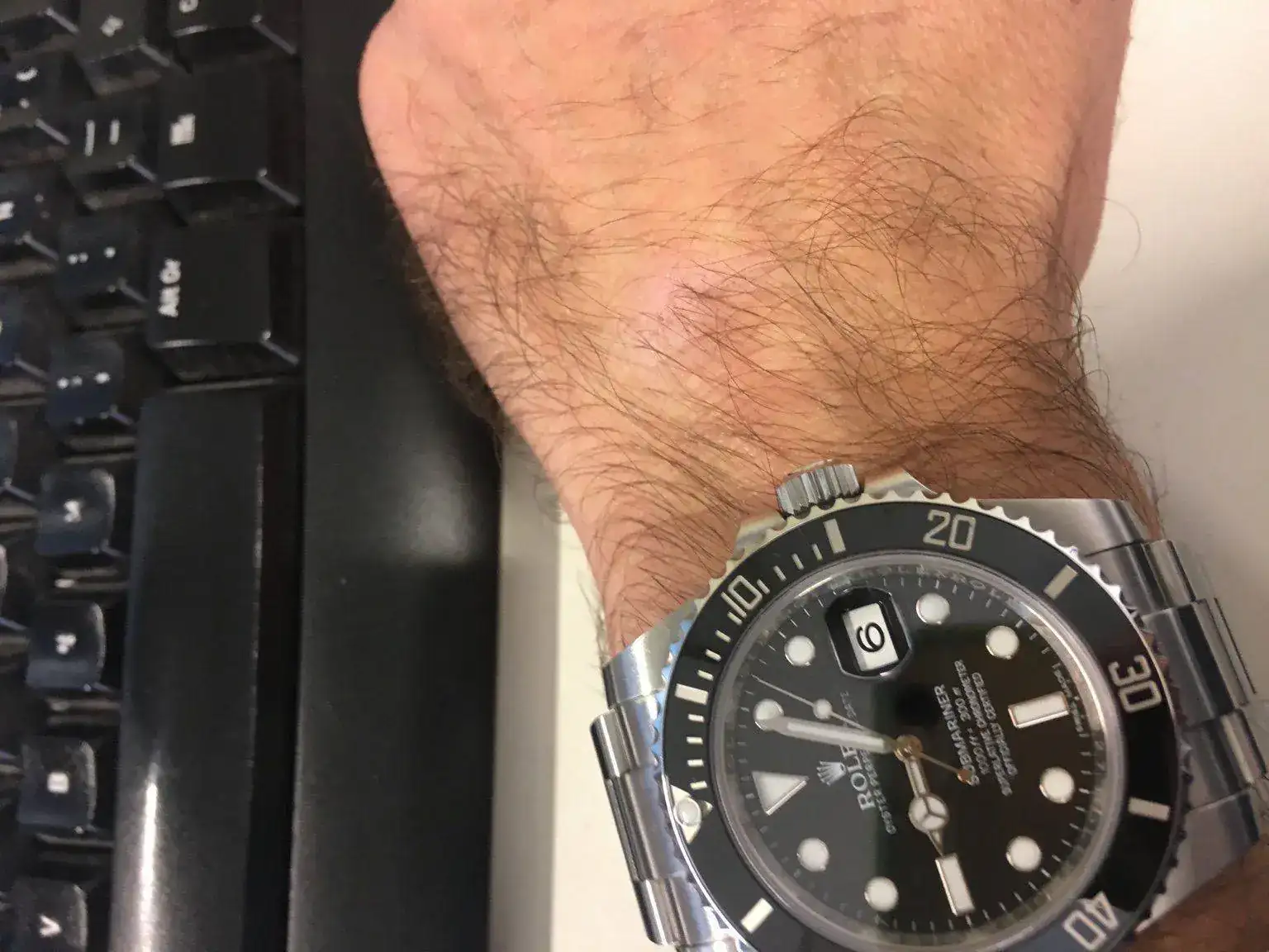 Nunca me ha pasado eso de que la corona me marque la piel, prueba de sacar un eslabón mas de la parte de las 6 para que el cajetín queda mas "cerca del cuerpo", yo llevo menos eslabones en el lado de las 6 y me van bien, de los rolex nuevos a mi me parecen mas comodos los cierres sin corredera, es decir todos los que no son diver ya que en estos en cajetin es mas pequeño "mas corto" y se integra mejor en una muñeca pequeña, ademas el easy link tambien me resulta mas practico que la corredera de los subs