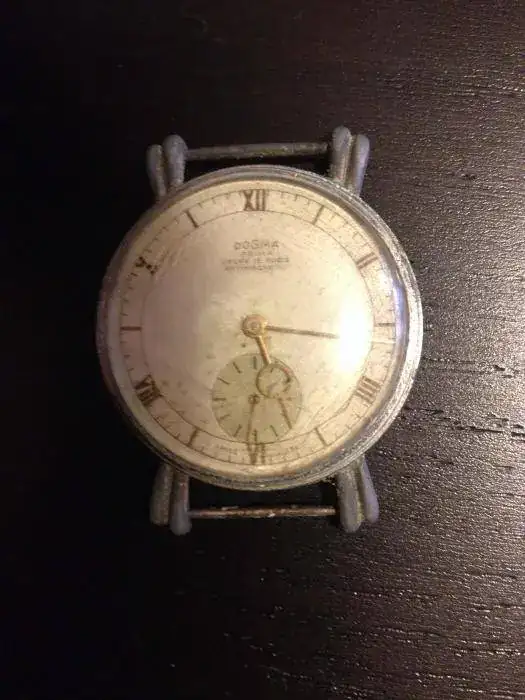 Baño de oro o cromado para este antiguo reloj Dogma?