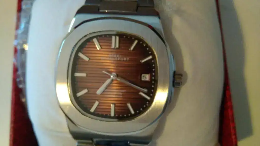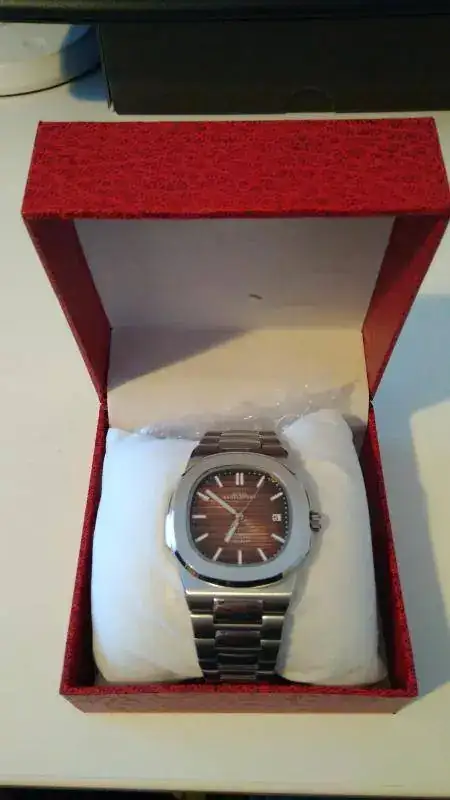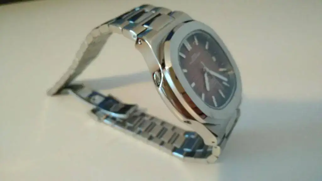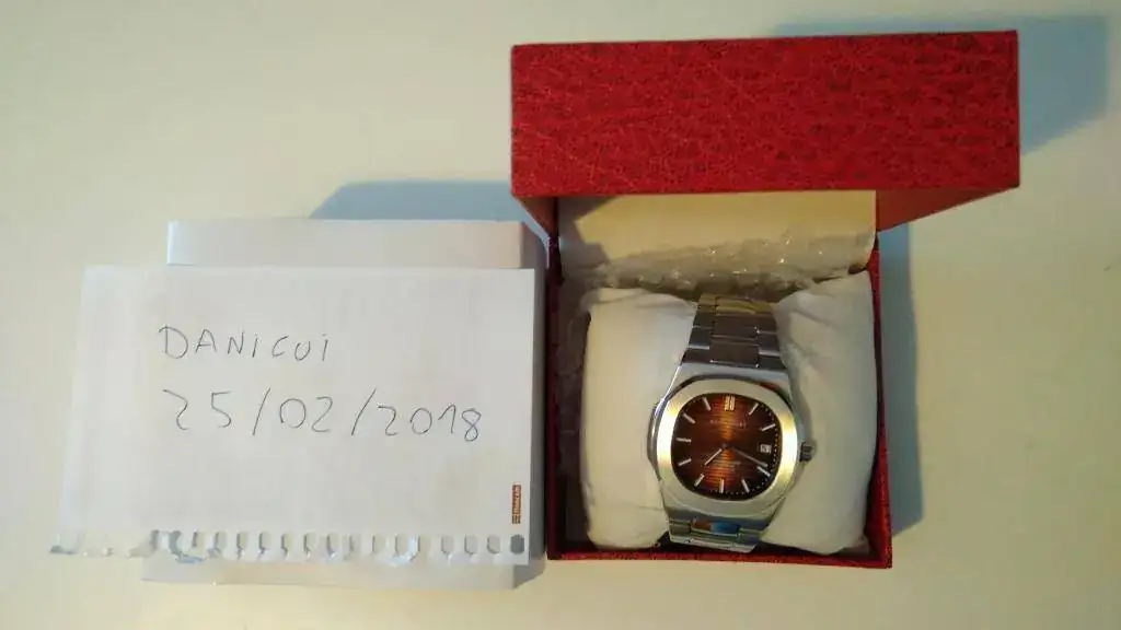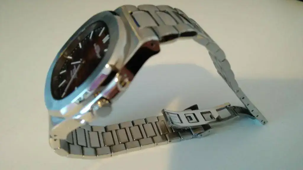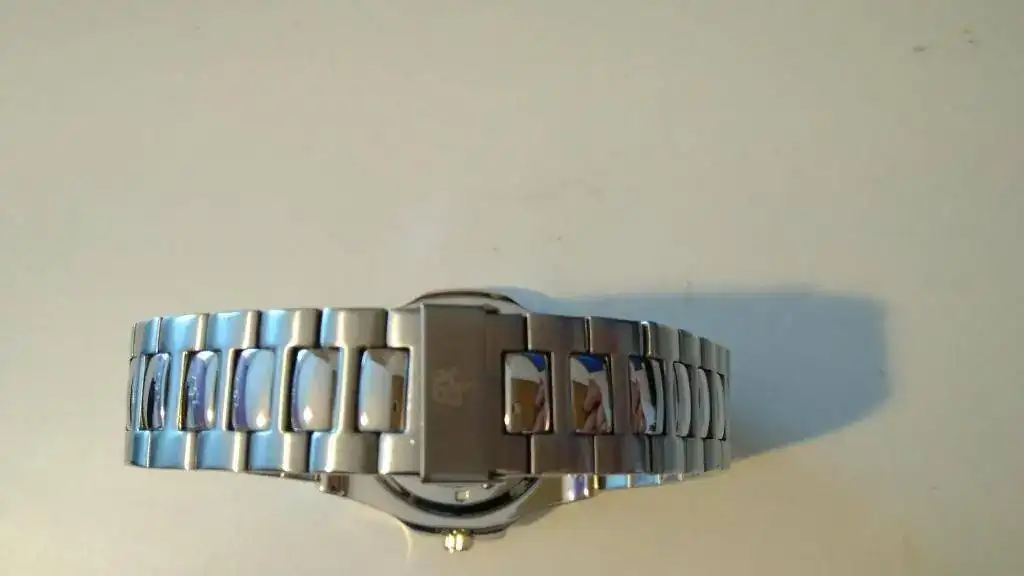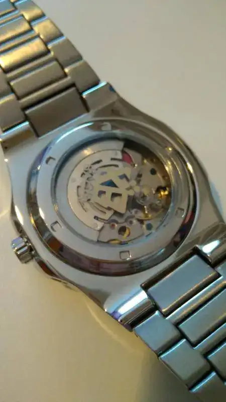 Pues aquí está este bonito "homenaje" a tan famoso reloj. Está en perfecto estado, sólo me lo he puesto para darme cuenta de algo que debo advertir para evitar malentendidos: no sé si es un defecto de fabricación o un diseño mal hecho, pero al ponérmelo se queda un hueco entre mi muñeca y la parte del armis que se une con la caja, como veréis en las dos últimas fotos, tal vez pueda forzarse un poco, o arreglarlo de alguna manera, o ponerle otra correa (parece difícil por la forma que tiene)... o si tienes una muñeca más gruesa que la mía (es de 16-17 cm...) a lo mejor no te deja el hueco.