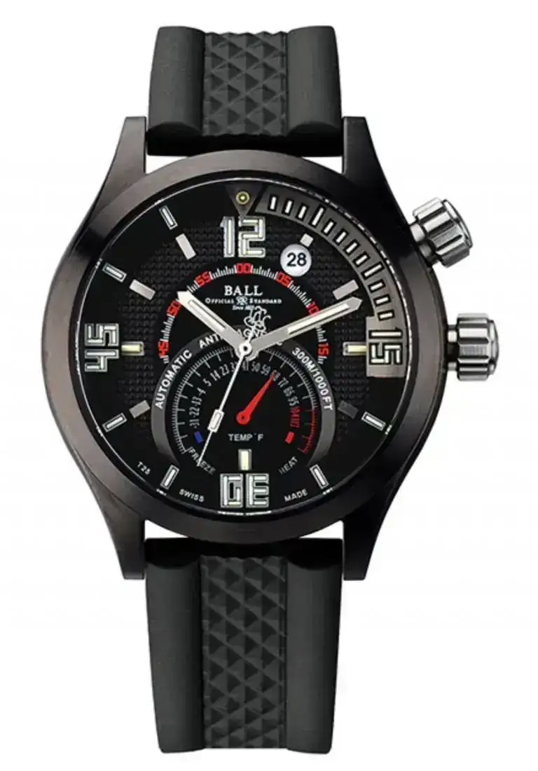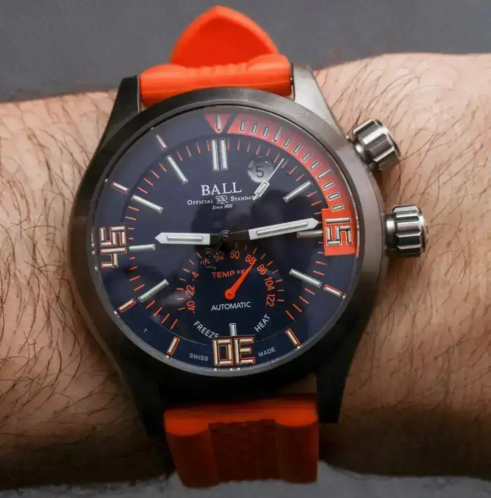 Como con demasiada frecuencia vemos las mismas complicaciones en los relojes y sin mucha variedad. Los cronógrafos, los GMT, los relojes con calendario…etc. Pues Ball sacó algo diferente, bien fabricado, y es uno de los pocos relojes hoy día con termómetros mecánicos en ellos, entre estos modelos ya raros de por sí , el más deportivo es el Ball Engineer Master II Diver TMT.