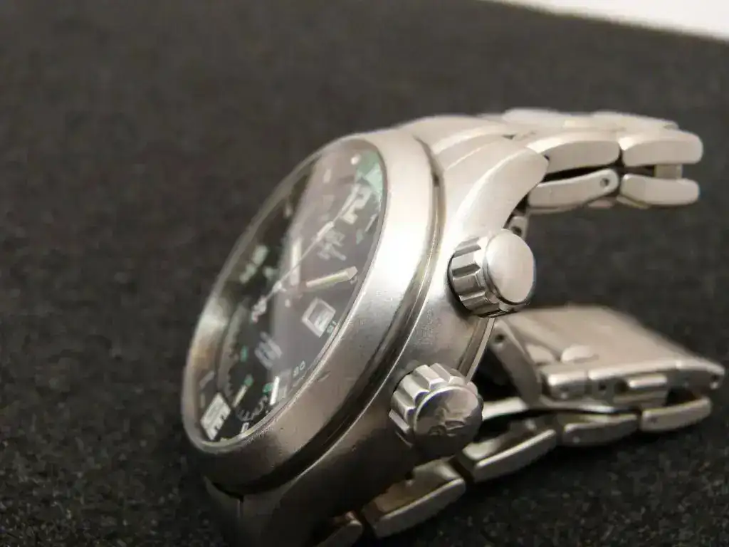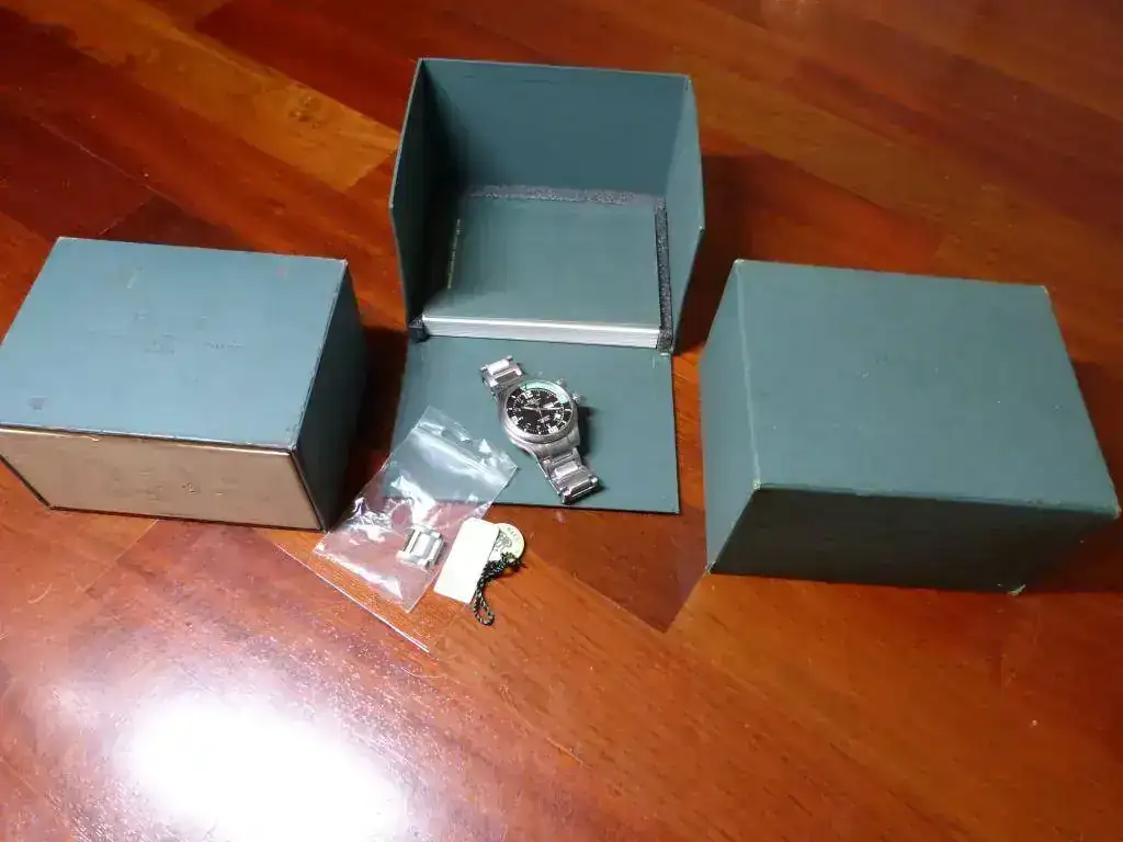 El reloj presenta síntomas de uso, el armis y el enlink de las 12 tienen alguna holgura que se aprecia en las fotos. Bien de marcha. Caja exterior, caja interior (deteriorada) y manual de instrucciones.