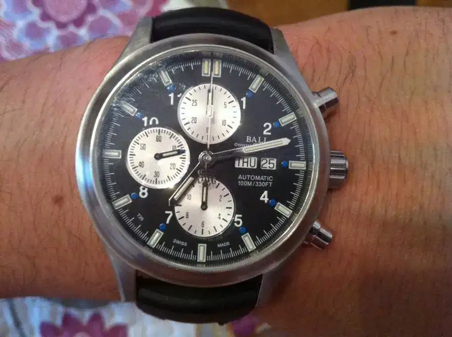 Hola a todos, pongo a la venta este estupendo cronógrafo Ball Fireman Ionosphere en excelente estado, no tiene ni tan solo microrayas ni en cristal, ni caja ni brazalete, tiene una marca muy pequeña a las 6 que he intentado mostrar en una foto y que en la realidad apenas se nota.