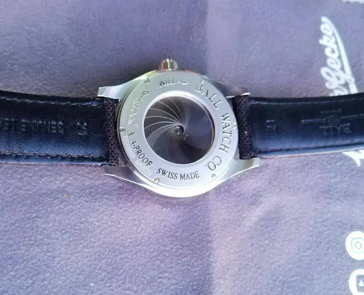 Es un reloj con una resistencia al agua de 100 metros, con corona roscada firmada con las “RR” propias de Ball. Monta cristal de zafiro en ambas caras, delante y trasera. El antirreflejos del zafiro es de lo mejor que he visto.