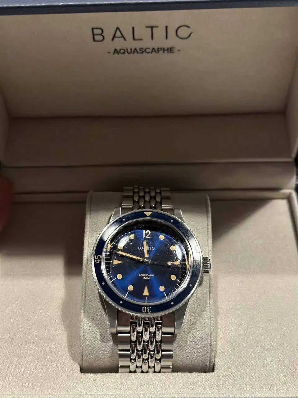 Hola a todos, hoy me ha llegado un precioso Baltic Aquascaphe comprado en la web del fabricante y me he encontrado con algo que no me ha pasado al comprar otros relojes, os cuento a ver qué opináis. Lo he sacado de la caja y al ir a probármelo he visto que el armis me iba muy justo, hasta el punto de resultarme incómodo y tampoco tengo una muñeca enorme, está en torno a los 18 centímetros. Mi sorpresa ha llegado cuando he descubierto debajo de la caja un pequeño rectángulo troquelado donde venía un fragmento del armis. De entrada me he alegrado porque voy a poder agrandar el brazalete y no tener que devolver un reloj porque me queda pequeño, pero luego he pensado que a lo mejor el reloj ha pasado por otras manos y es una devolución que me han revendido. ¿Que opináis ? ¿Creéis que el fabricante deja el brazalete en un tamaño intermedio y deja el fragmento en la caja por si lo necesitas agrandar o pensáis que ha pasado por otra persona que lo ha dejado a su medida ?