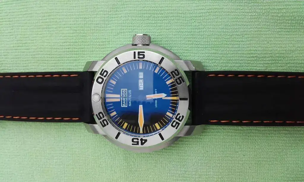 Con el permiso vuestro, y de los moderadores, hoy sale pera cambio este descomunal diver (Diametro sin corona:49,00 mm. y 170 grs.de peso). Es demasiado grande para mi mueca, y eso que lo he intentado, pero no llegamos nunca a ponernos de acuerdo.