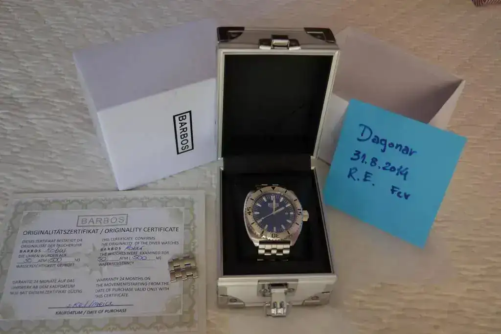 Viene con caja de cartón, caja metálica y certificado de estanqueidad.