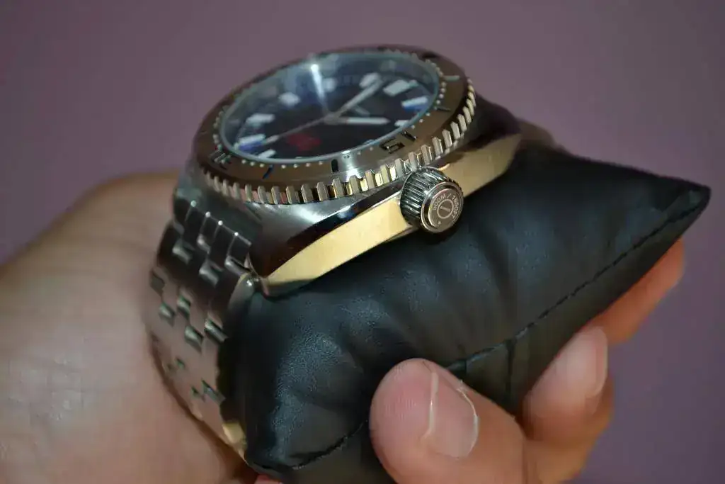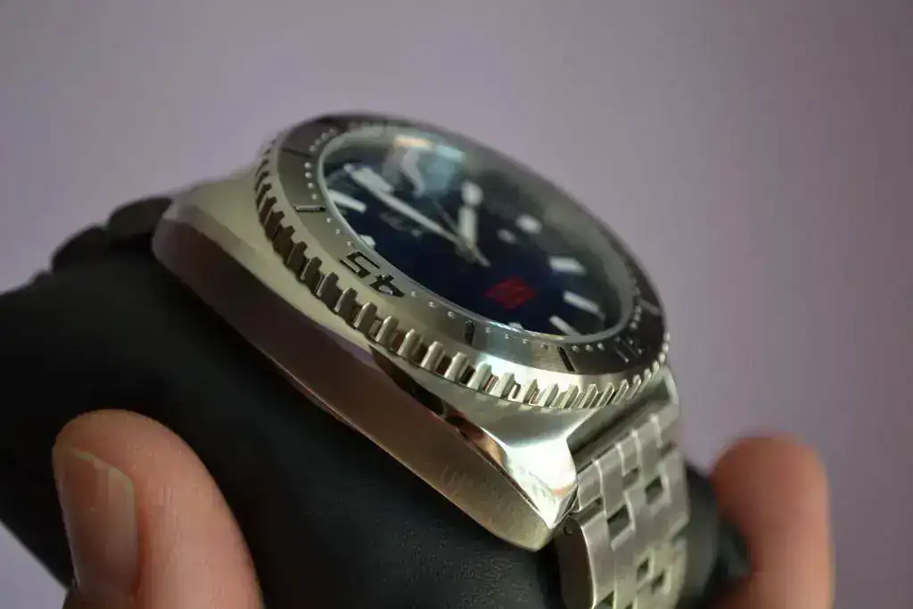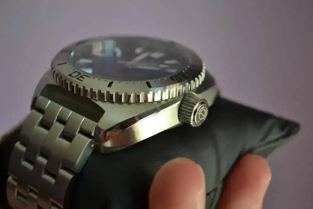 Bisel unidireccional de 90 clicks, con un tacto muy bueno, y entre asas nada menos que 24mm.