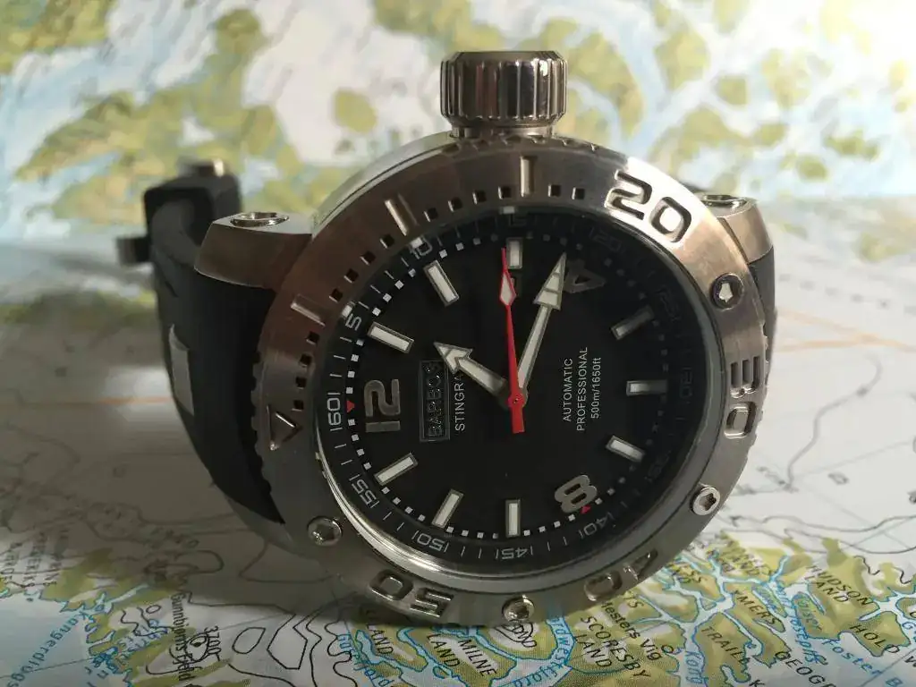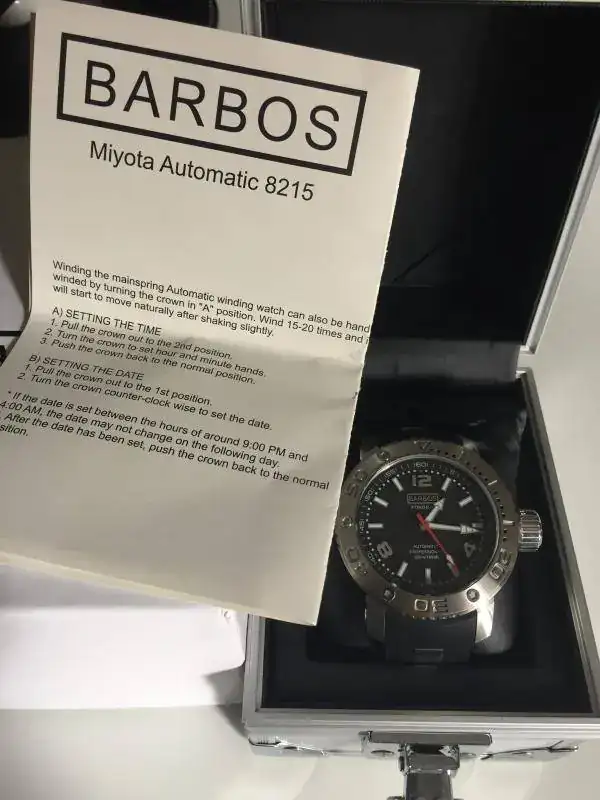 Como siempre nos sucede cuando tenemos una pieza deseada a la vista, unos salen y otros entran. Ahora le toca salir a este sobresaliente Barbos Stingray, un diver soberbio de 500m y montando el reputado movimiento Miyota 8215. Su estado es impoluto y se incluye cubre caja, caja metálica y certificado.