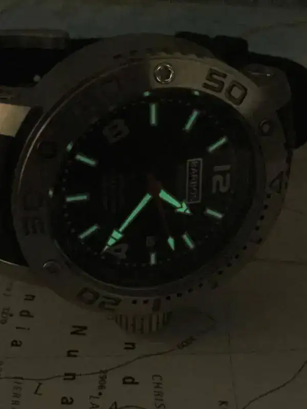 Por las fotos podréis juzgar vosotros mismos pero tiene unos acabados excelentes, un lumen por encima de otros relojes de su mismo rango (fotos hechas con la claridad que entra por las ranuras de las persianas a mediodía, imaginaos en la total oscuridad) y la suavidad con remonte manual del miyota. Por el foro se han leído todo tipo de opiniones sobre la corona roscada y firmada. En el poco uso que le he dado por casa, deciros que es una gozada ajustar las manecillas y el calendario con esta corona pulida, suave, sin aristas y que no molesta para nada en la muñeca.