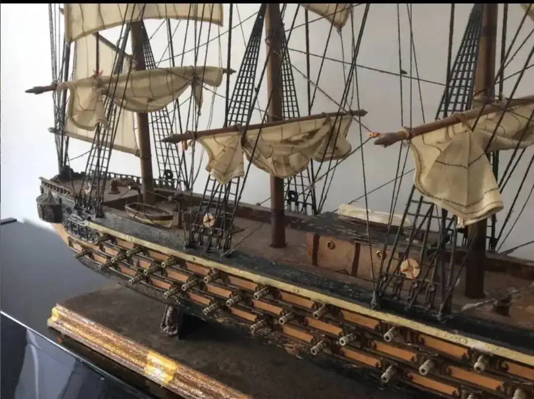 VENDO ANTIGUA Y ESPECTACULAR MAQUETA DE LOS AÑOS 60 DE UNA FRAGATA ESPAÑOLA DEL AÑO 1780. BARCO MILITAR DE TRES PUENTES CON 38 CAÑONES POR BANDA . HECHO A MANO EN MADERA Y TELA CON PEANA. GRAN NIVEL DE DETALLE Y CALIDAD.LA HACE FALTA UNA LIMPIEZA Y PEQUEÑA RESTAURACIÓN (VER FOTOS) DEBIDO AL PASO DEL TIEMPO.