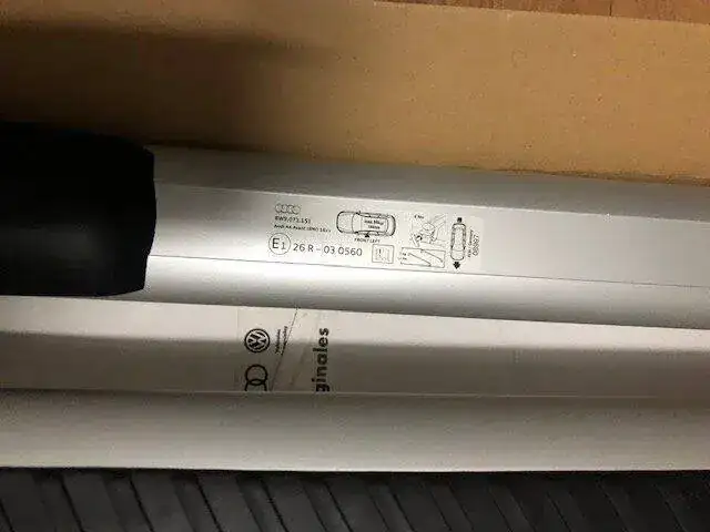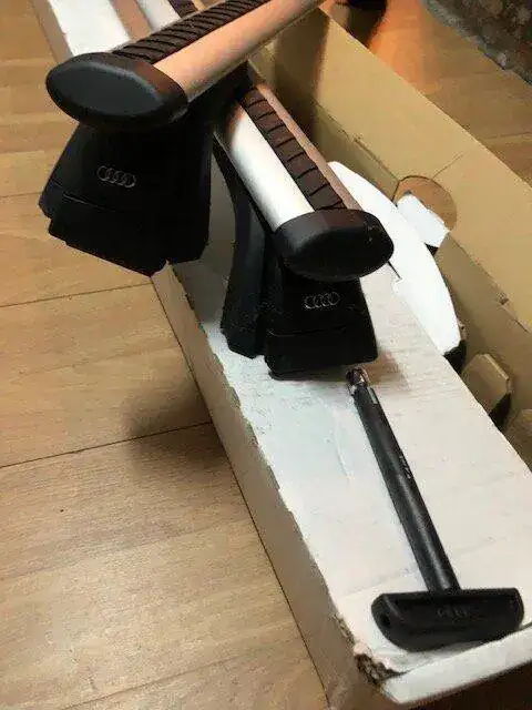 Barras techo Audi A4 Avant B9 a estrenar ORIGINALES.Los soportes para el techo originales son la base ideal para múltiples posibilidades de transporte sobre el techo del vehículo. Soporte para el techo de perfil de aluminio revestido de polvo, con forma aerodinámica y elementos de fijación de plástico. El sistema está asegurado mediante un dispositivo de cierre antirrobo. Peso propio: aprox. 5 kg Volumen de suministro: 1 juego de soporte básico (2 unidades) Indicaciones: - Se debe tener en cuenta que el peso máximo admisible , las piezas adosadas y la carga es de 90kg