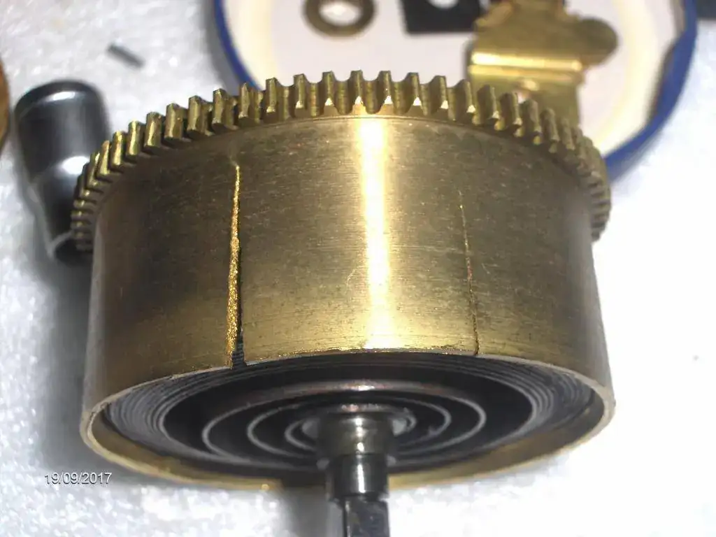 Me dijo el propietario qeu le dio cuerda sin darse cuenta qeu se la habian dado antes y debió apretar como si no hubiese un mañana, y me dijo que oyó un ruido muy grande dentro. Supongo qeu sacaría el muelle del ojal y pegaría un atigazo. Aún asi ha etado fucnionando unas semanas , no puedo asegurar si ese fué el motivo del descalabro.