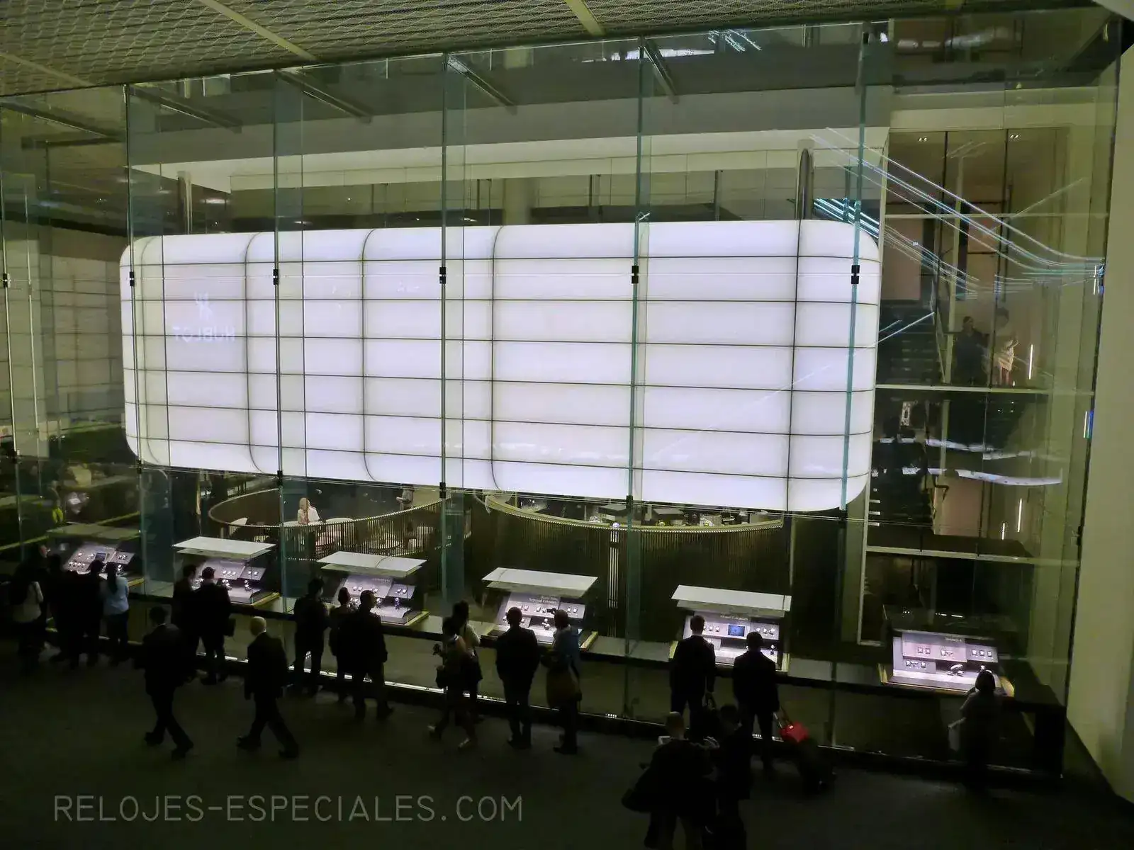 Para empezar, unas imágenes del stand en sí mismo, imágenes ahora reales en lugar de los renders remitidos en las notas previas. Personalmente me parece que han conseguido plasmar la filosofía que el ya no tan nuevo presidente Thierry Stern se ha propuesto: transparencia en la comunicación y difusión de la marca a todos los niveles, más allá del entorno coleccionista en el que se ha movido tradicionalmente, consciente de su misión preservadora y divulgadora de un arte como es la Alta Relojería. Con un superficie útil de 1.500 metros cuadrados repartidos en tres plantas, dispone de un 50% más de espacio que el anterior stand. 600 m2 de cristaleras y 16 vitrinas que albergan toda la colección.