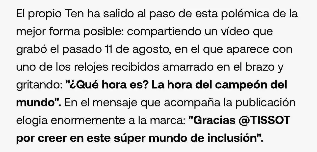 ChapoPues el protagonista de la noticia tiene muchos menos prejuicios que algunos, y ha agradecido efusivamente a Tissot no haber hecho discriminación alguna: