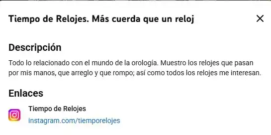 A continuación dejo la que es su descripción del canal. Vereis que falta un "que" pero hay algo peor. Sobre todo teniendo un cuenta que se trata de un canal de relojeria
