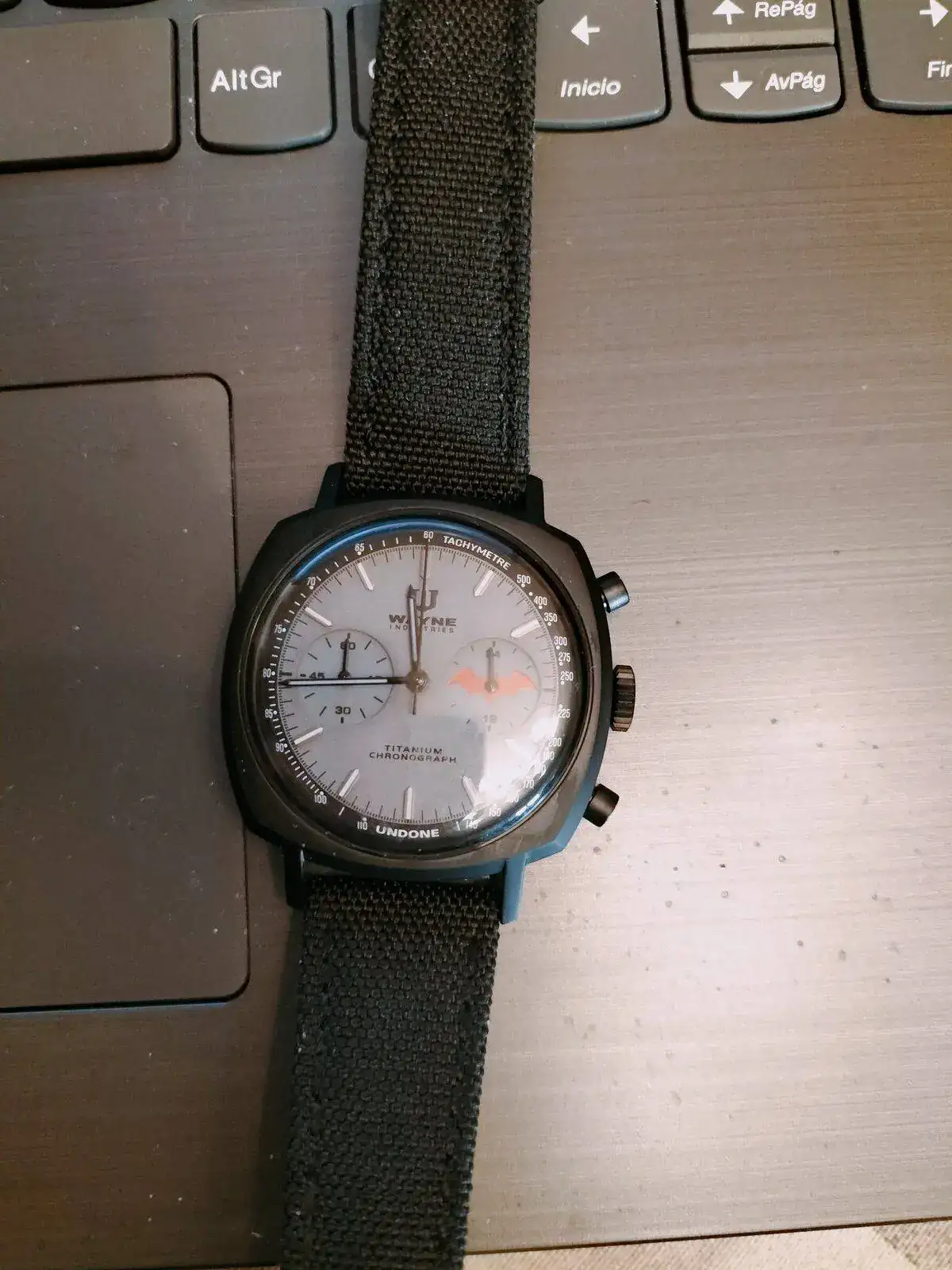 Hacía tiempo que había visto en UNDONE unos relojes homenaje a Batman que me llenaban de curiosidad, en primer lugar porque habían puesto como "marca del reloj" a Wayne Industries. me pareció un detalle original y en segundo lugar porque hace tiempo que quería tener un MecaQuartz y éste lleva el Seiko VK64 que es uno de los que conozco.