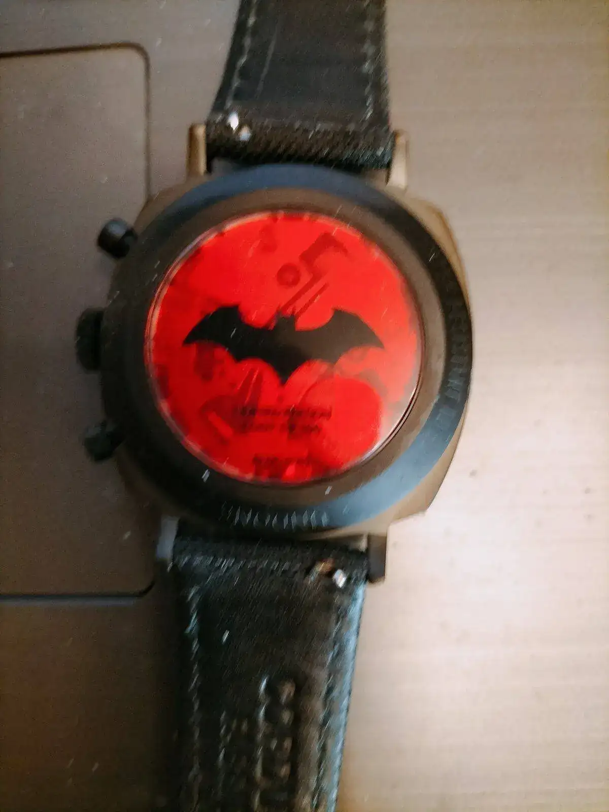 Al abrirlo se presenta un cronógrafo de esfera gris y cala de titanio con referencias a Batman y con la presencia que había visto en las fotos (Disculpad las mías, sigo siendo el mismo fotógrafo de mierda de siempre)