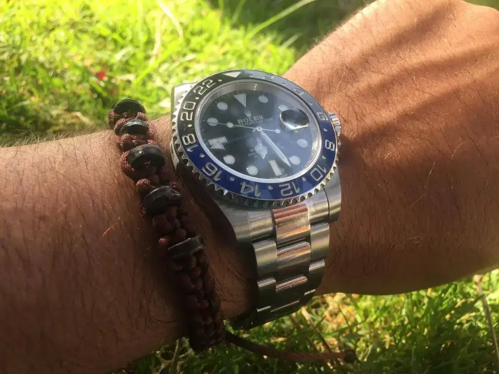 Quizá deba explicar que uso correa y no el armís original porque así el "look Rolex" se disimula un poco màs, ya que al menos en mi ciudad, no es muy seguro andar mostrando ese reloj que todos los "descuidistas" conocen.