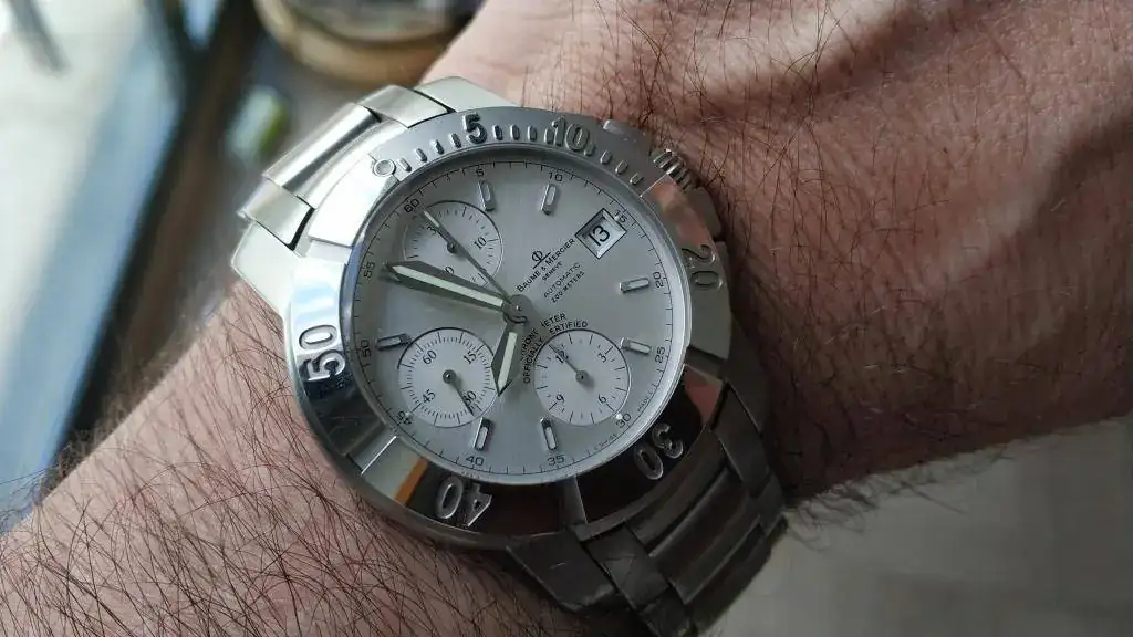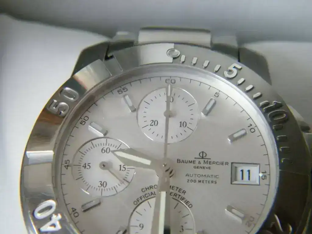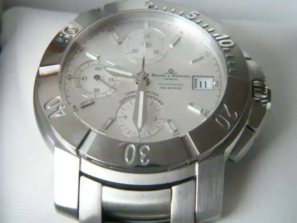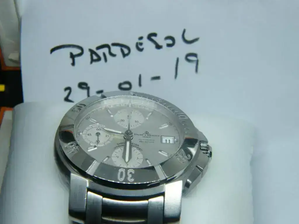 Procedente de cambio con un compañero vendo este cronógrafo Baume & Mercier Capeland XL 200 m. Se trata de un precioso crono automático, resistente al agua 200m. Su estado es usado con las señales correspondientes a un uso moderado, tal y como se ve en las imágenes.