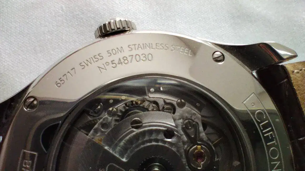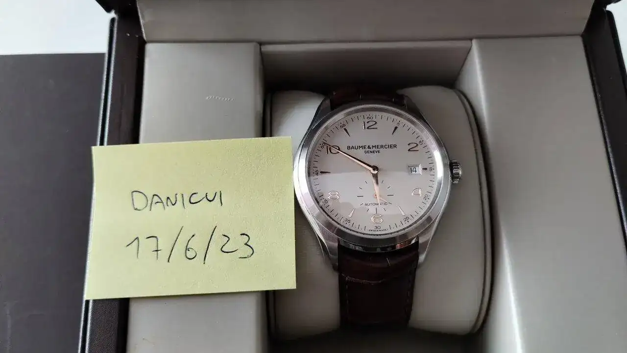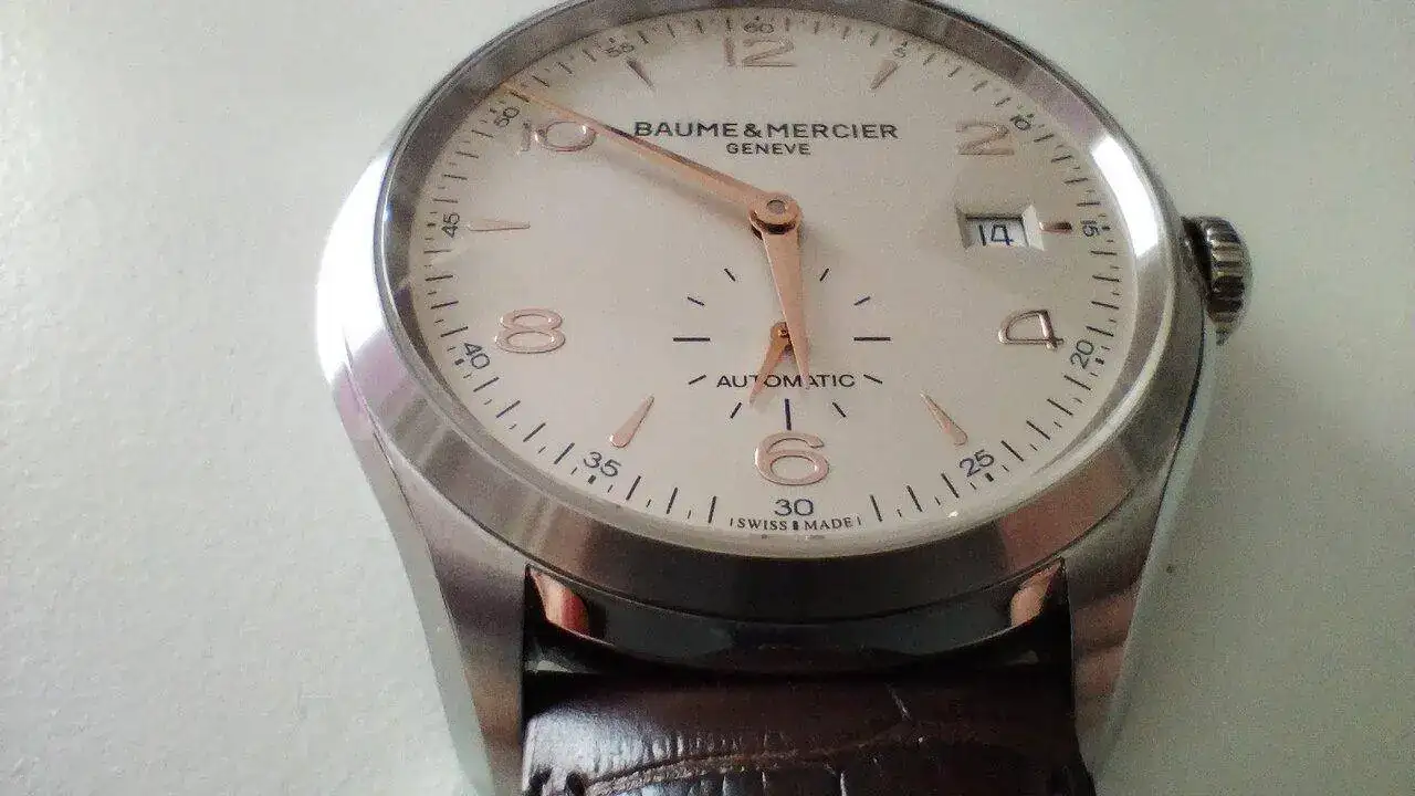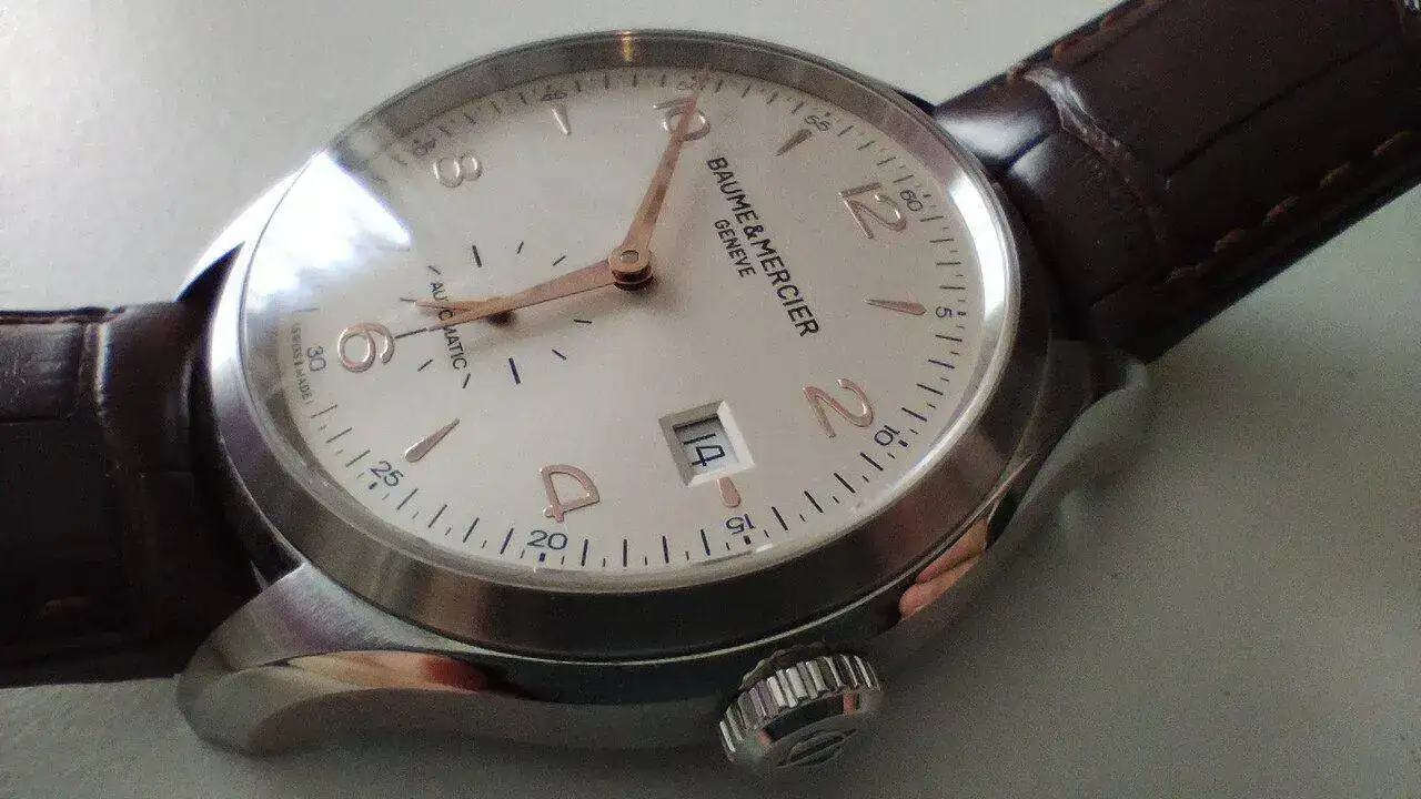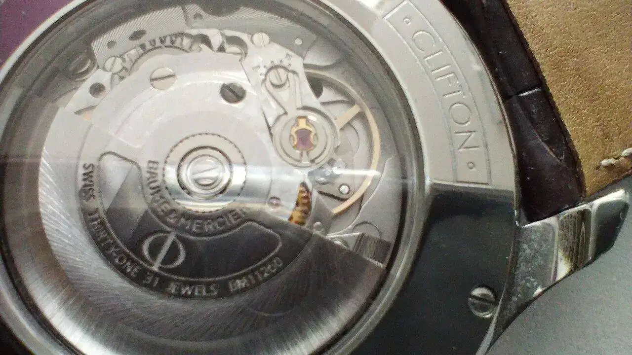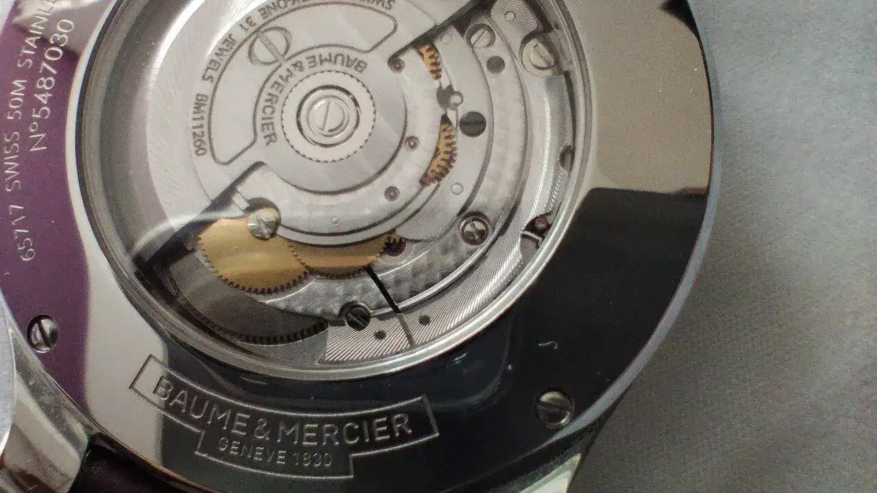 Movimiento: Baume & Mercier BM11260 (base Sellita SW260-1), 28,800 vph, 31 jewels.
