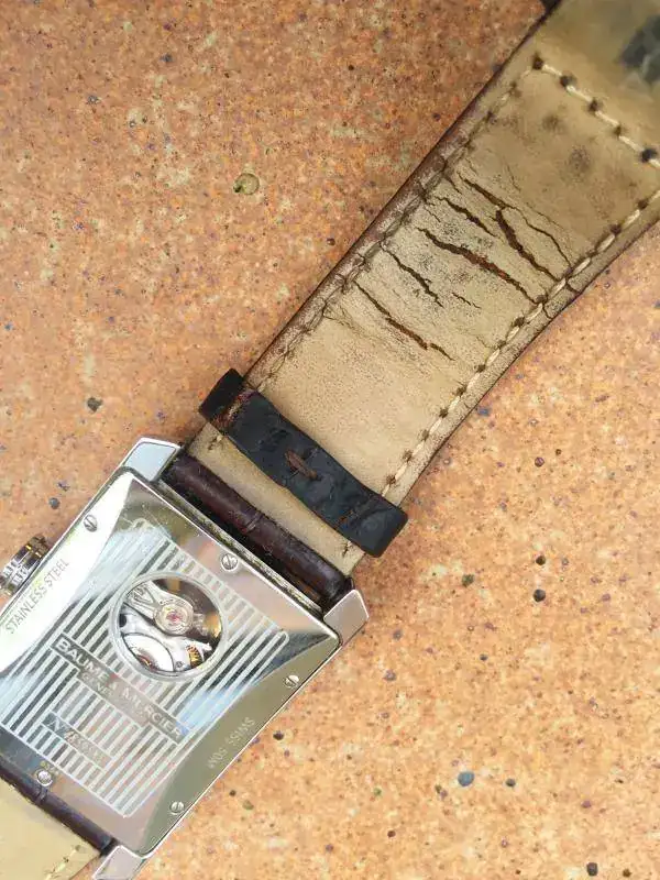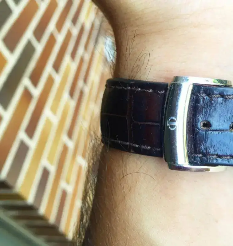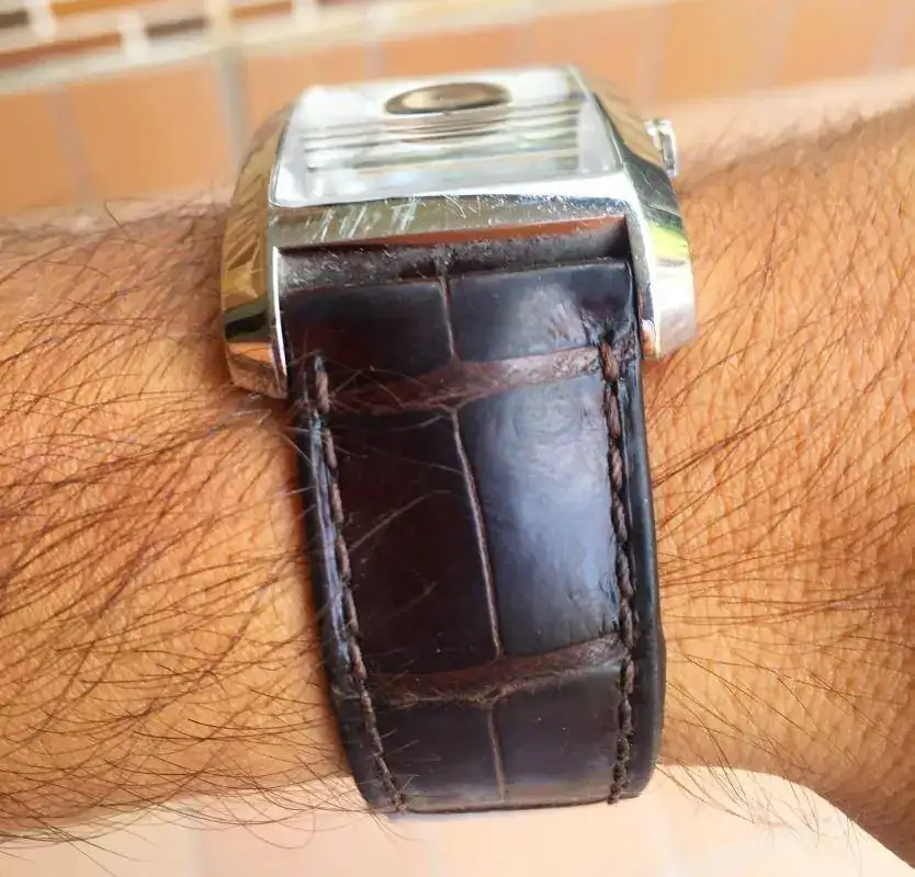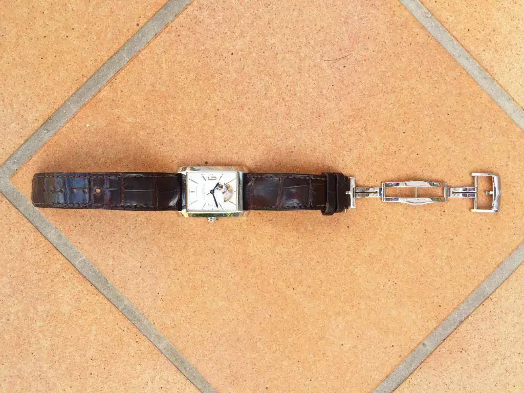 El reloj fue adquirido en 2010 y ha sido usado desde entonces, por lo que tiene algunas marcas de uso (solucionable con un simple pulido), pero el reloj está en muy buen estado y en perfeco estado de marcha. La correa es de cocodrilo y a pesar de que tiene uso, se puede seguir utilizando sin problemas porque el exterior sigue estando bien. Abstenerse compradores en busca de un "re-estreno”, porque es no lo es.