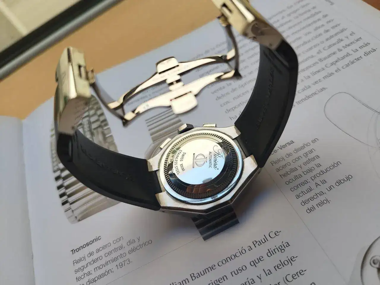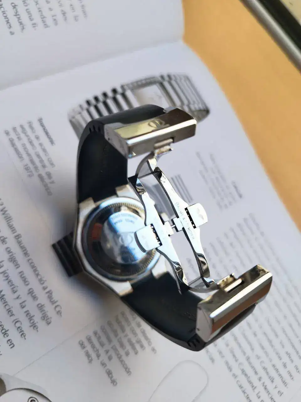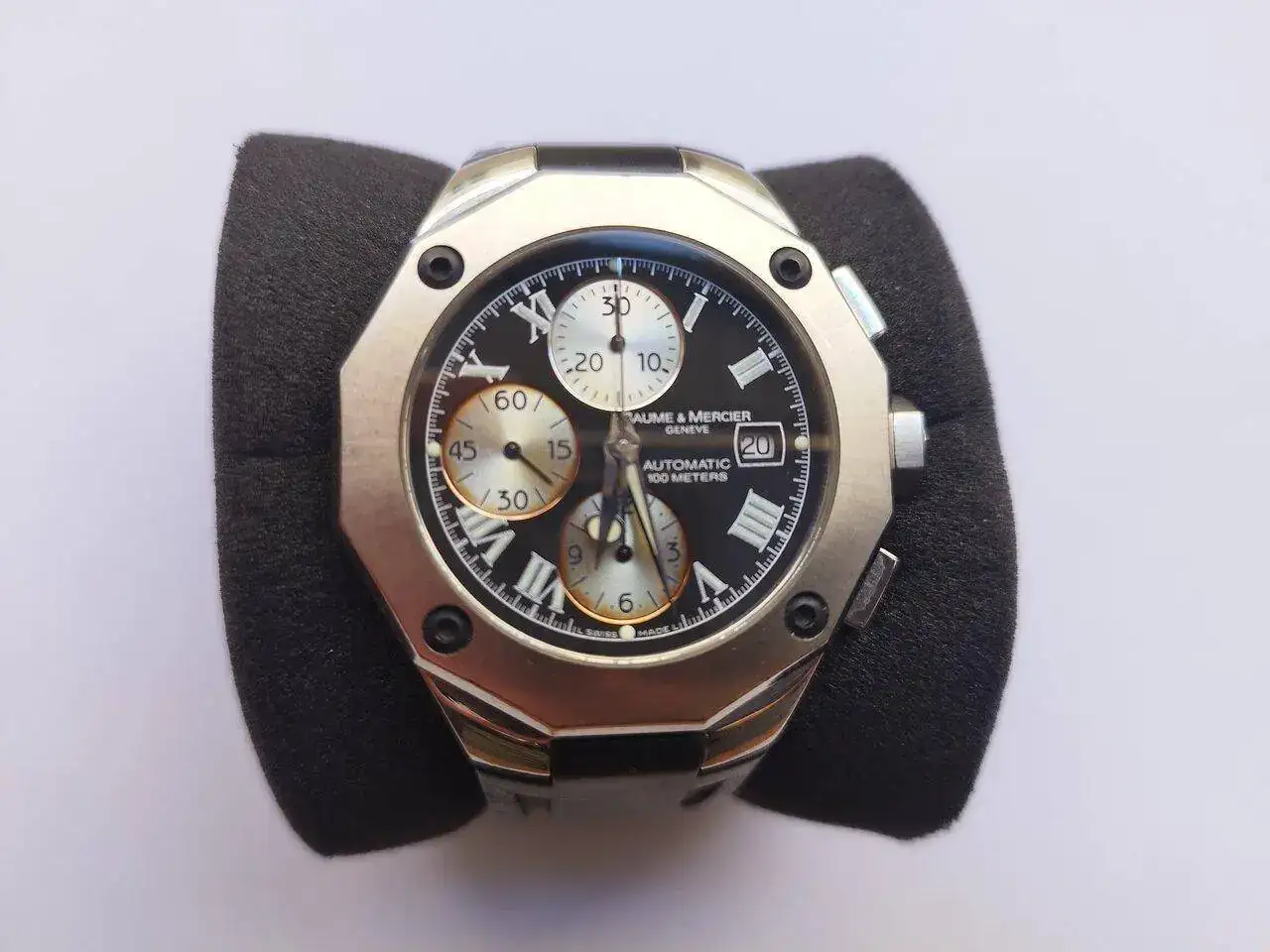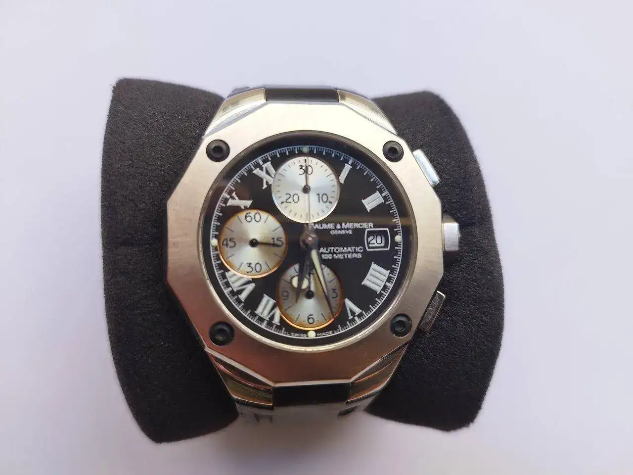 Se vende Baume Mercier Riviera Chronografo automático....El reloj está en buen estado de conservación, nunca ha sido pulido, por lo que tiene las mínimas marcas de un uso moderado, marcas y arañazos que no golpes ni bollos...la esfera del reloj está perfecta, las subesferas del chrono están cogiendo pátina, el mismo caso que el Rolex Daytona patrizzi lo que en este último acaso aún incrementa más el precio del reloj curiosamente.....la correa de caucho es la original que traía el reloj en el momento de la compra, por lo que no es un caucho nuevo presenta ya signos evidentes del paso del tiempo...pensar que este reloj costaba más de 3k en su momento...por último deciros que el funciona correctamente, como no podía ser menos en un reloj de este nivel...