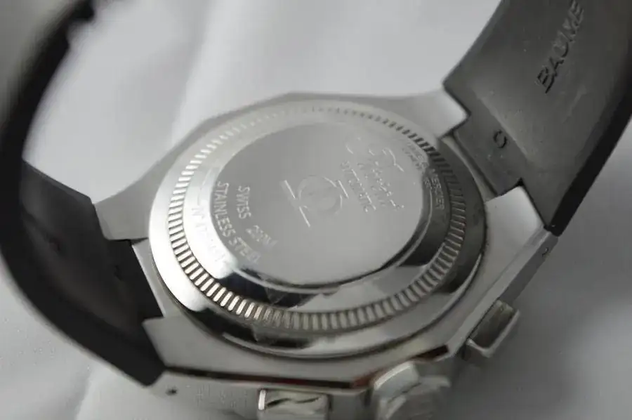- CAJA: de acero dodecagonal multifacetada (es una de las cajas mas elaboradas que he visto en mucho tiempo). Totalmente estanca, serial y marca registrada en parte posterior. Corona roscada a la caja.