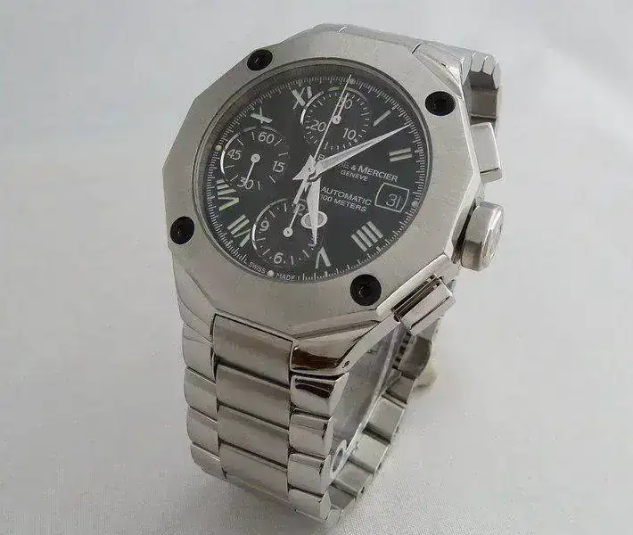 A la venta este maravilloso Chrono Baume&Mercier Riviera .El reloj tal como podéis ver en el reportaje fotográfico es una verdadera preciosidad , la caja es la habitual dodecaédrica de la serie "Riviera" y tiene unas dimensiones de 43mm incluída la corona. Monta un calibre cronográfico automático en base a un ETAsa7750 . Es una de las versiones más altas de los "Riviera" ya que viene con su brazalete de acero con cierre tipo "mariposa" y unión de los eslabones mediante tornillos. El mecanizado y acabados del acero (brillo/mate/"soleil") en caja y brazalete es realmente espectacular . El reloj dispone de su set al completo compuesto por los siguientes elementos : caja exterior de cartón , interior de lujo elaborada en madera , manuales, eslabones sobrantes y tarjeta de garantía de D.O de nuestro país (sin fechar). El reloj ha pasado recientemente (aunque no lo precisaba) su primera revisión por un reconocido profesional relojero así que como os podéis imaginar el funcionamiento es impecable . El estado estético del reloj es muuuy bueno reseñar unicamente algún inevitable pelillo en el bisel (entre la 1 y las 2) que dependiendo de como incida la luz se ven o no se ven , de todas formas las fotografías creo que hablan por si sólas . El precio de esta preciosidad es de 1050€ (no negociables , no creo necesario recorda el precio de tarifa) en los que están incluídos los gastos de envío por SEUR "Plus" asegurado contra robo o extravío en 1800€ para tranquilidad del comprador y mia propia. Cualquier duda o pregunta la atenderé encantado a través de MP , muchas gracias.