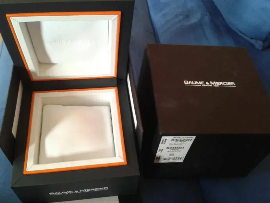 Te lo mandaría con su caja exterior de cartón,la caja interior de madera,papeles y tarjeta de garantia firmada DIRECTAMENTE por el importador de baume en españa en el años 2010.