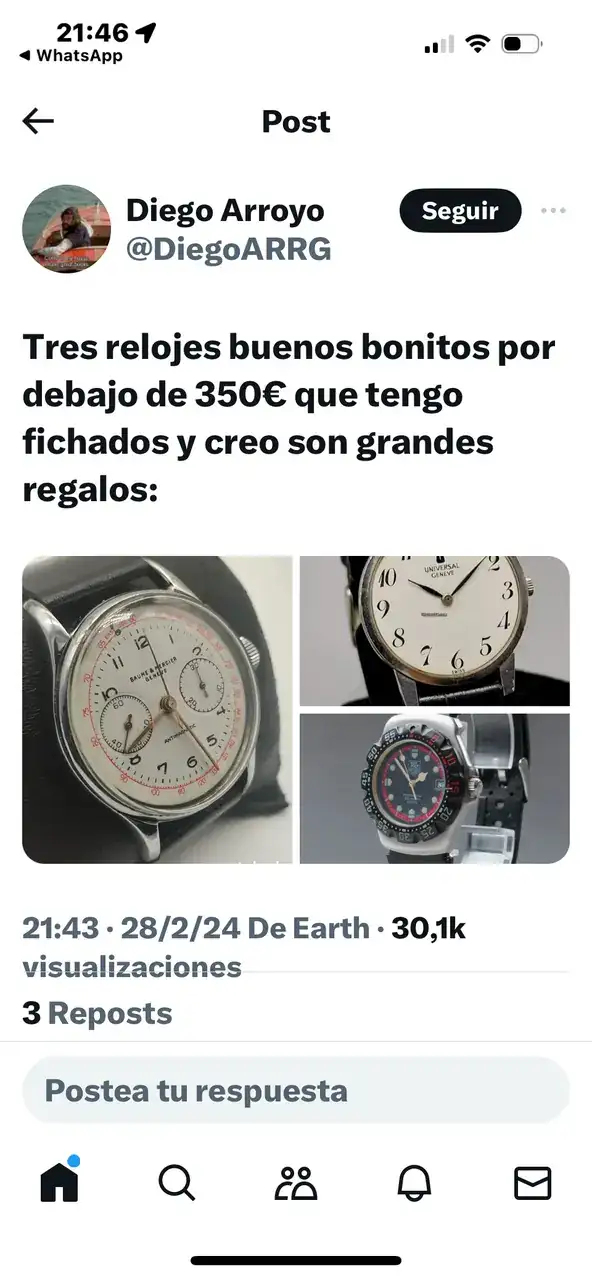 Yo tuve por ejemplo un Classima de oro que es para mi el Calatrava del hombre humilde, y me pareció un reloj excelente, que cambié torpemente por un Breitling Superocean.Ahora tengo este Capeland Chrono y te puedo decir que estoy muy contento, habiendo pagado además bastante menos de mil euros...