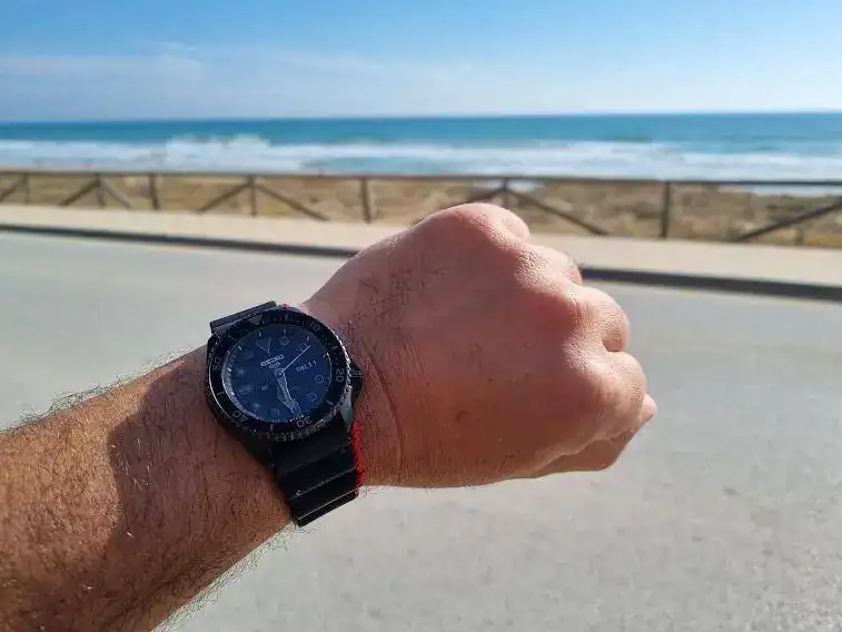 Es una de las razones por las que lo pedí. Reloj de verano, para no quitármelo ni en la piscina ni en la playa, aunque lo alternaré con el Samurai azul que me ha acompañado estos años.