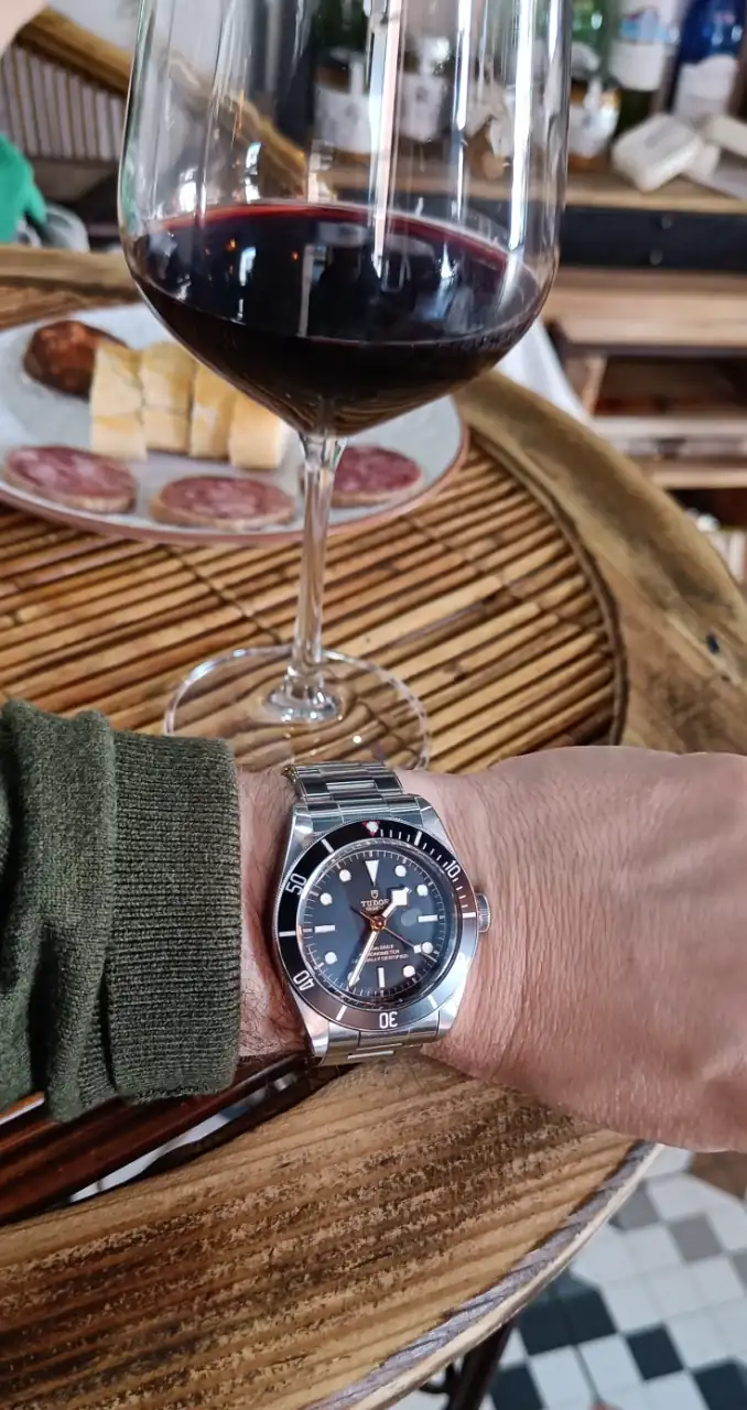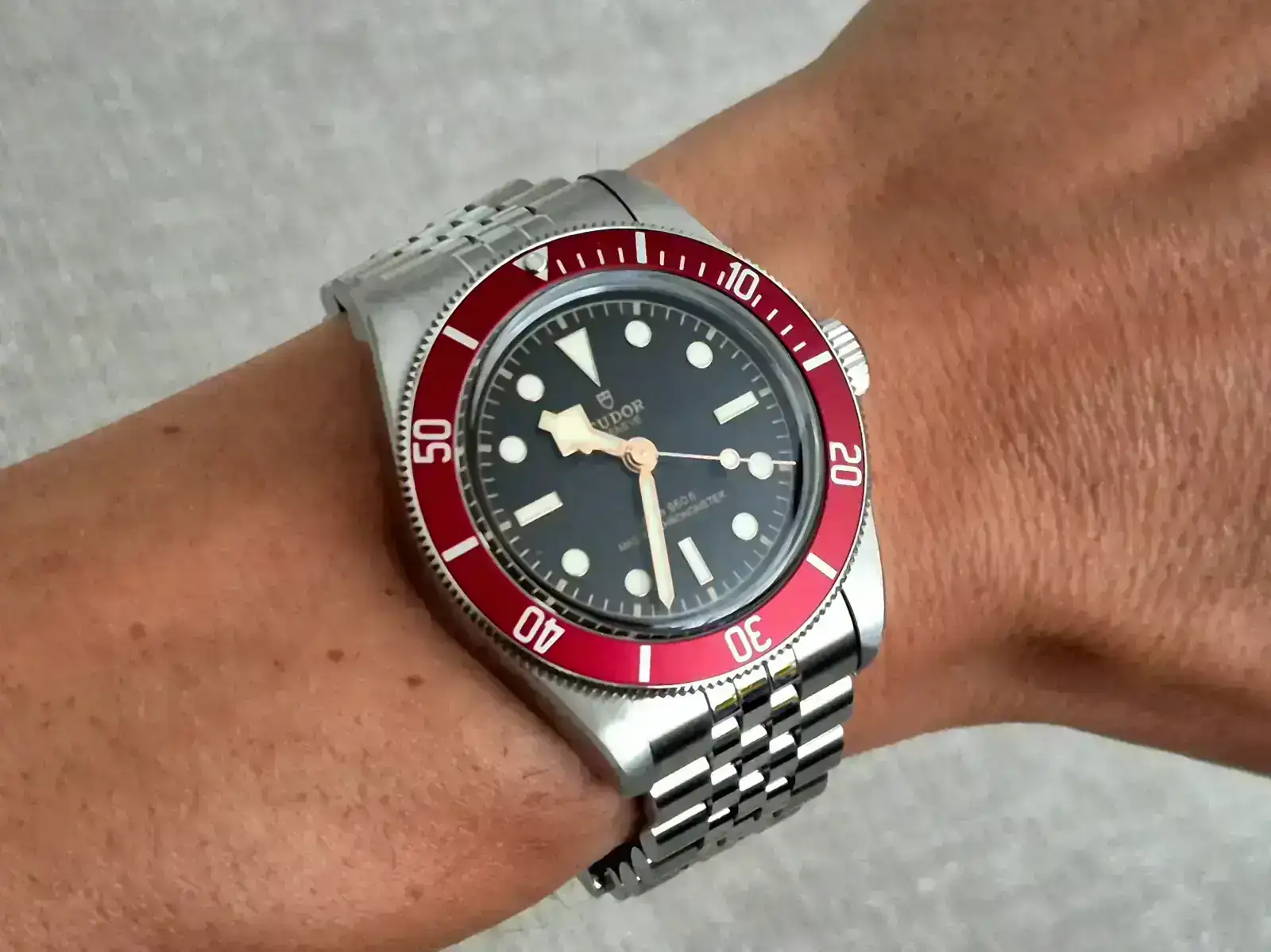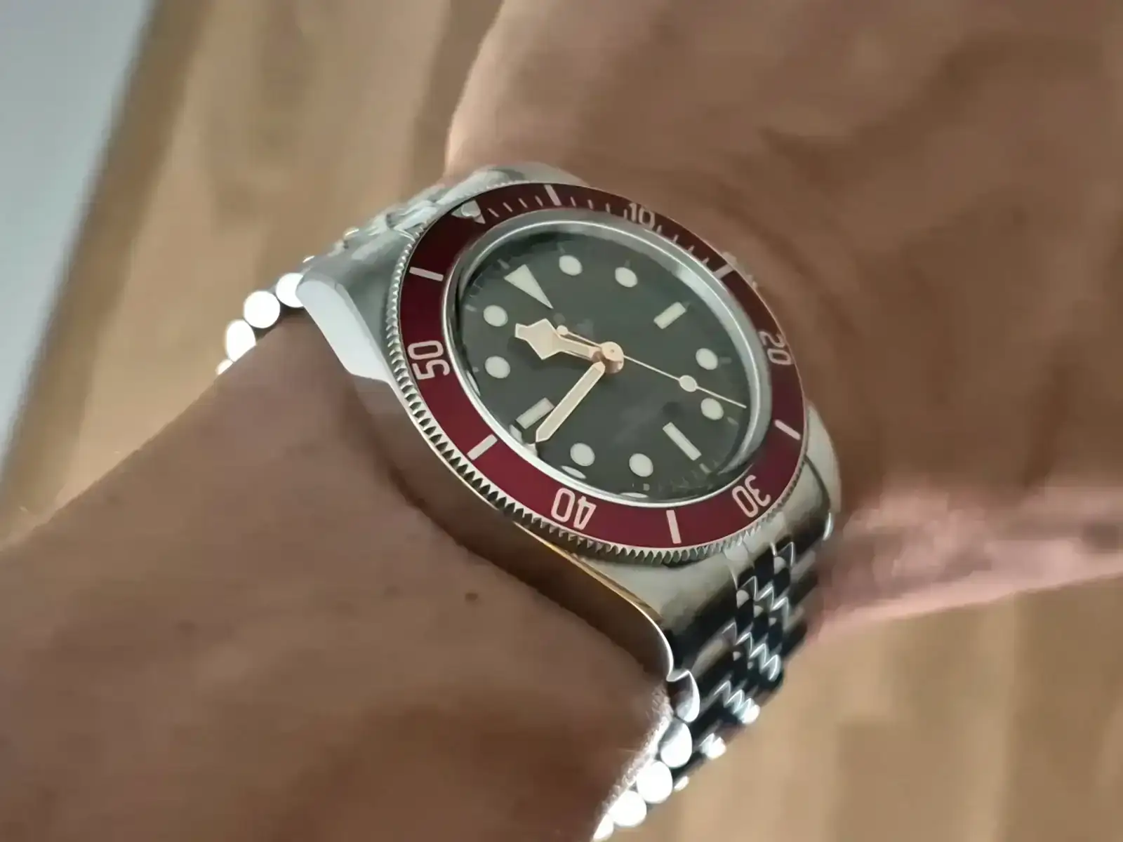 Mi reloj es el mismo modelo que el tuyo ( no es la última versión del 41 mm ), con la diferencia del color del bisel. La última versión del burdeos en 41 mm, si salió al mercado con opción de brazalete jubilee original de Tudor.