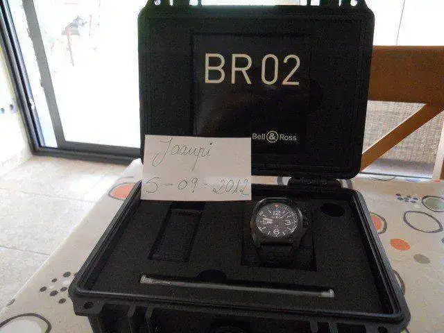 Hola a todos pongo a la venta mi Bell & Ross Br-02, carbon, en estado prácticamente nuevo, de reestreno, le quedan todavía 1 año y cuatro meses de garantía. Es un Diver impresionante, con grandes acabados, y muy cómodo de llevar, dispone en la oscuridad de un Lumen azulado precioso. Se vende con la caja hermética, documentación, garantía, herramienta para el cambio de correas, y correa tipo nato totalmente nueva. El precio de venta nuevo esta en mas de 3.000 €. Mi precio es de 1950 €.