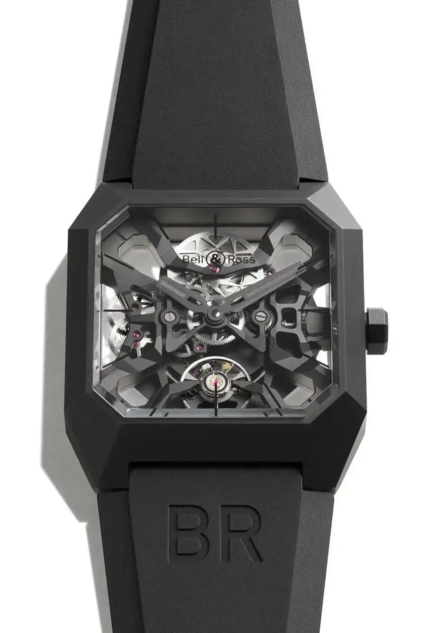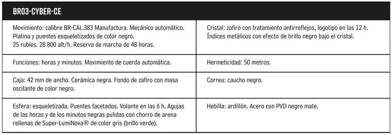 y ya dije que con esta "nueva era" de cerámica facetada Bell & Ross volvía a ponerse en la casilla de salida. Ahora llegan con el BR 03 Cyber Ceramic, cuya novedad consiste en invertir la posición del cailbre (el volante queda ahora a las seis) y cambiar la calavera por un esqueleteado en X, cosiguiendo convertirlo en "stealth" literalmente, ya que se hace bastante difícil ver la hora en él pero ¿a quién le importa?