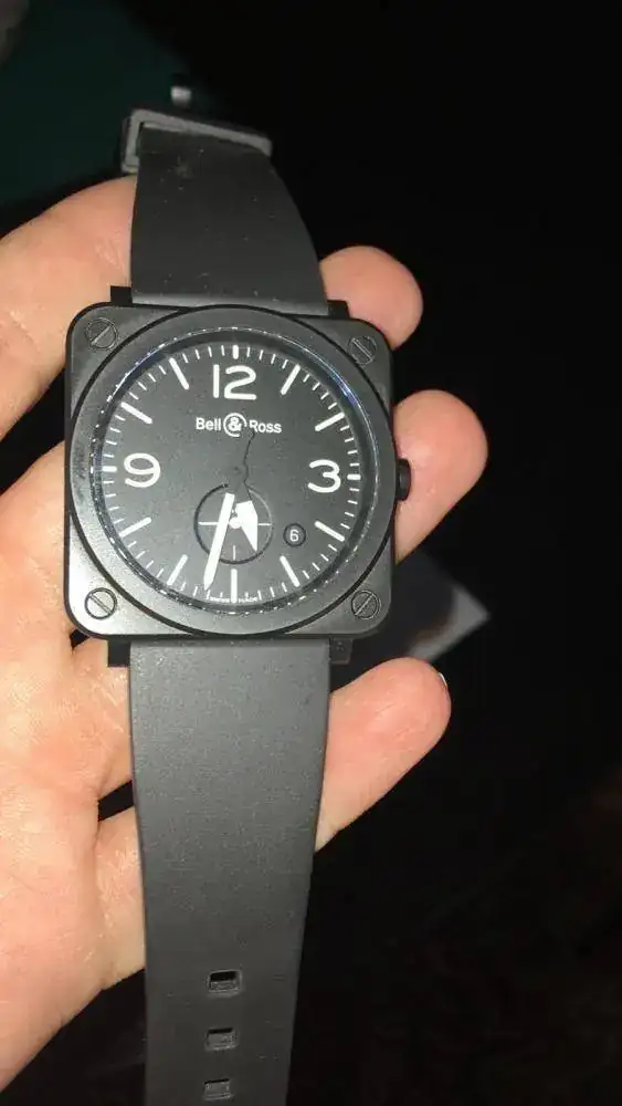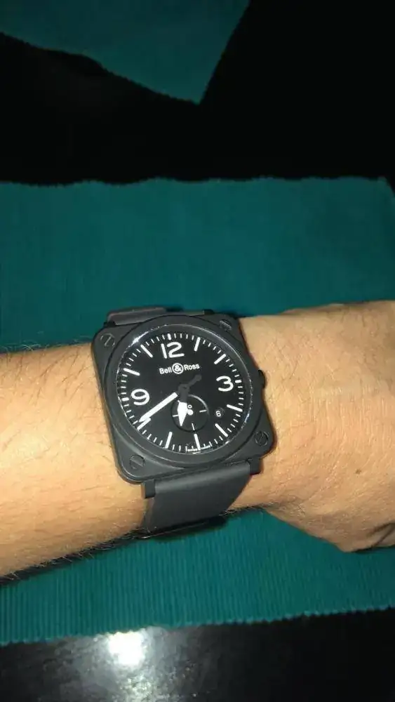 Para los que os gusten los relojes cuadrados pongo a la venta este Bell & Ross, distinto y original, muy buena visibilidad nocturna, fechador, lo he puesto poco y no tiene marca de ninguna clase, se lleva muy bien, lo compre de 39 porque el siguiente de 42 mm era demasiado grande ( que en cuadrado parece mucho más ), queda muy bien en la muñeca, con la presencia inconfundible que le da la caja cuadrada a todos los BR. La caja es cerámica, más cara que la de acero pero que lo aguanta todo para tenerlo siempre como nuevo.