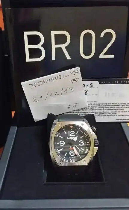 pues lo dicho hay que darle salida con todo dolor de corazón a este estupendo reloj BELL&ROSS BR02 en un estado impoluto vamos de 9.9 sobre 10.y con un año de garantía oficial toda la dotación y con un p.v.p que ronda ente los 3.200€ y 3.400€.bueno sin mas preámbulos yo lo vendo por 1.650€ envío como siempre incluido por naced 24 horas incluidos en el precio con este reloj puedo también aceptar algún cambio seria todo hablarlo bueno aquí unas fotos del reloj