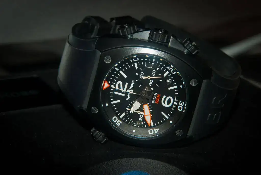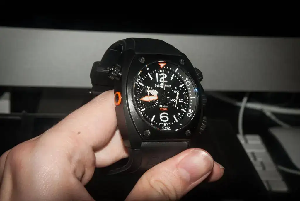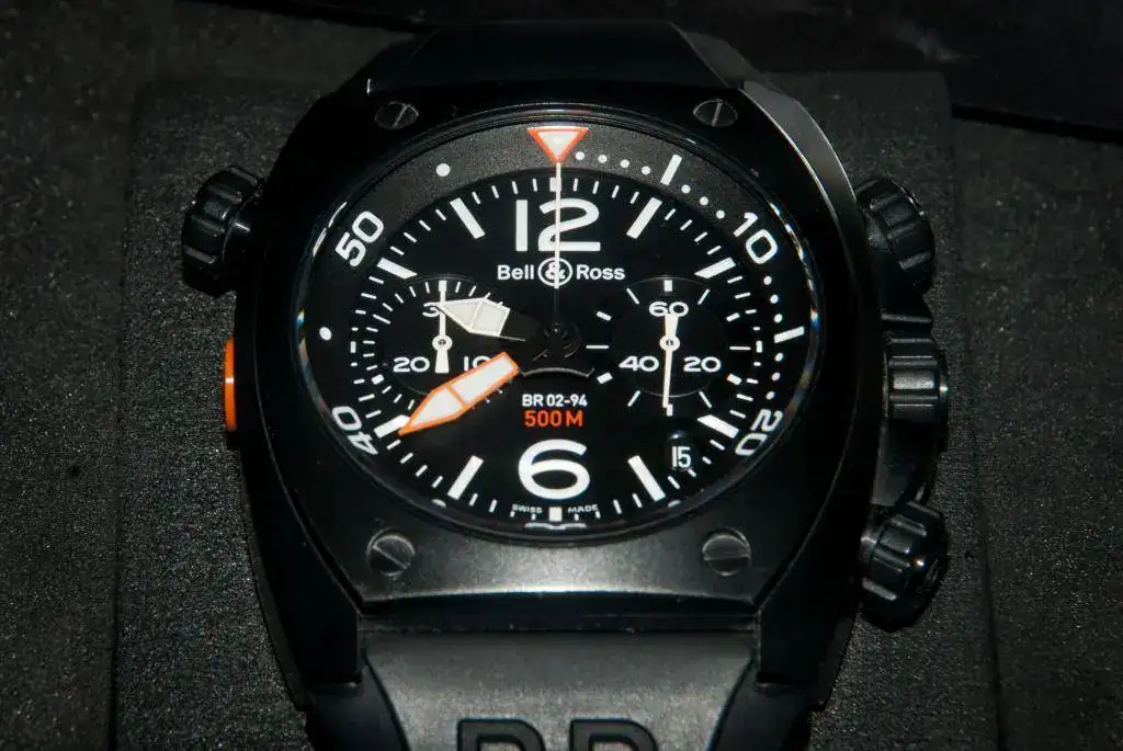 El BR02-94 está equipado con un cronógrafo para medir simultáneamente varios tiempos de inmersión o de descompresión. Los pulsadores roscados y la válvula de descompresión garantizan la estanqueidad y la resistencia hasta 500 m.