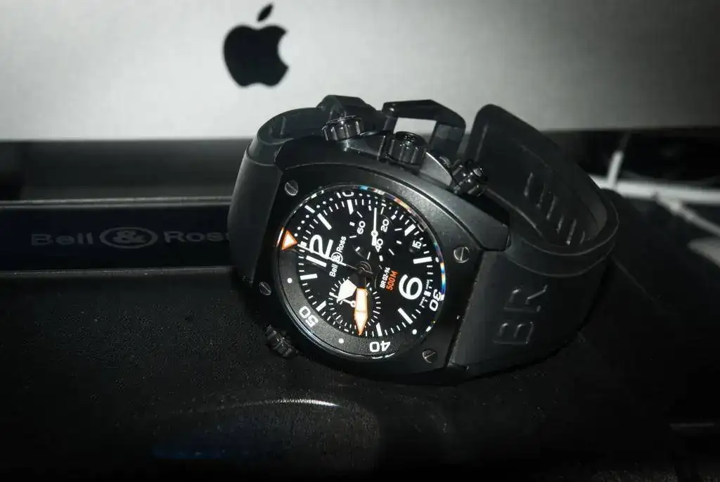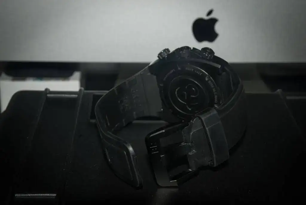 - Caja : diámetro 44 mm. Acabado en acero PVD negro mate. pulsadores, coronas y fondos roscados. Válvula de descompresión.