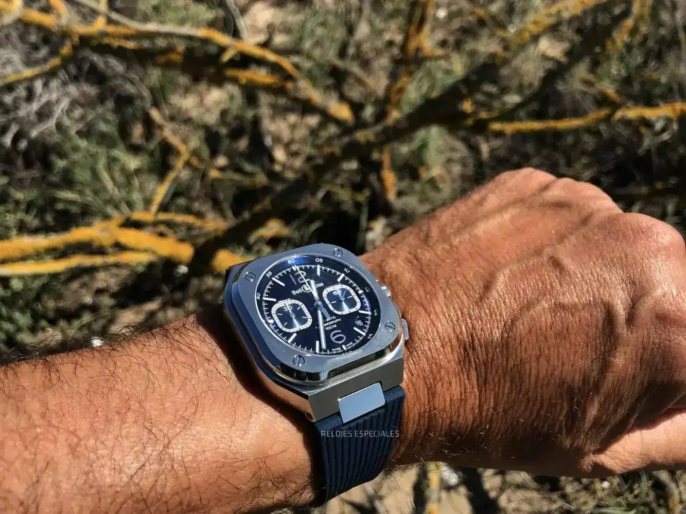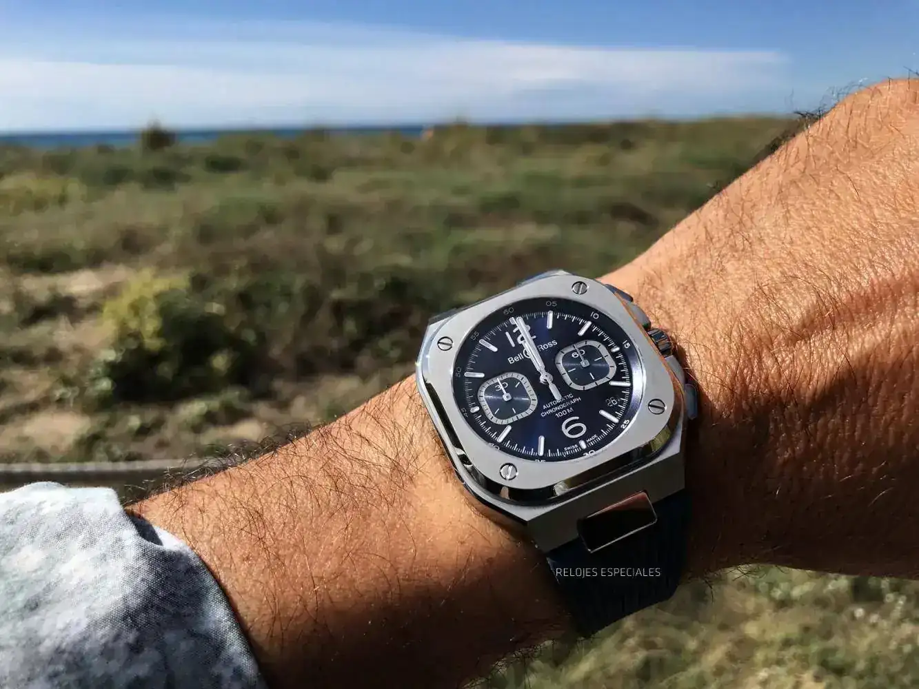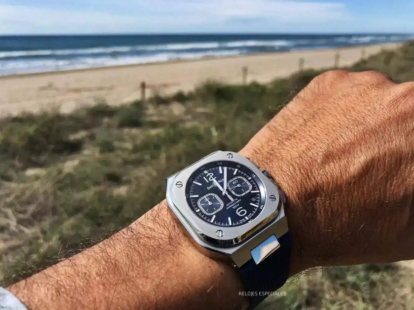 Y no sé si será porque echaba en falta algo dentro de la esfera o por qué, pero este me pareció un "ahora sí-que-sí". Casi una suerte no haberlo recibido con brazalete porque me hubiera costado más devolverlo. Monta un calibre "BR-301", que es un ETA 2894-2. Resistencia al agua de 100 metros. El precio: 5.900 €, y 5.400 € la versión en caucho que veréis aquí. Si costase 1.000 € menos sería, en mi opinión, un superventas. Pero igual lo acaba siendo igualmente.