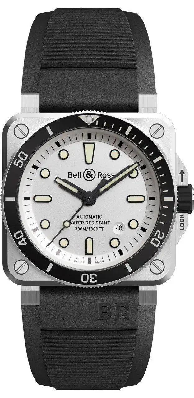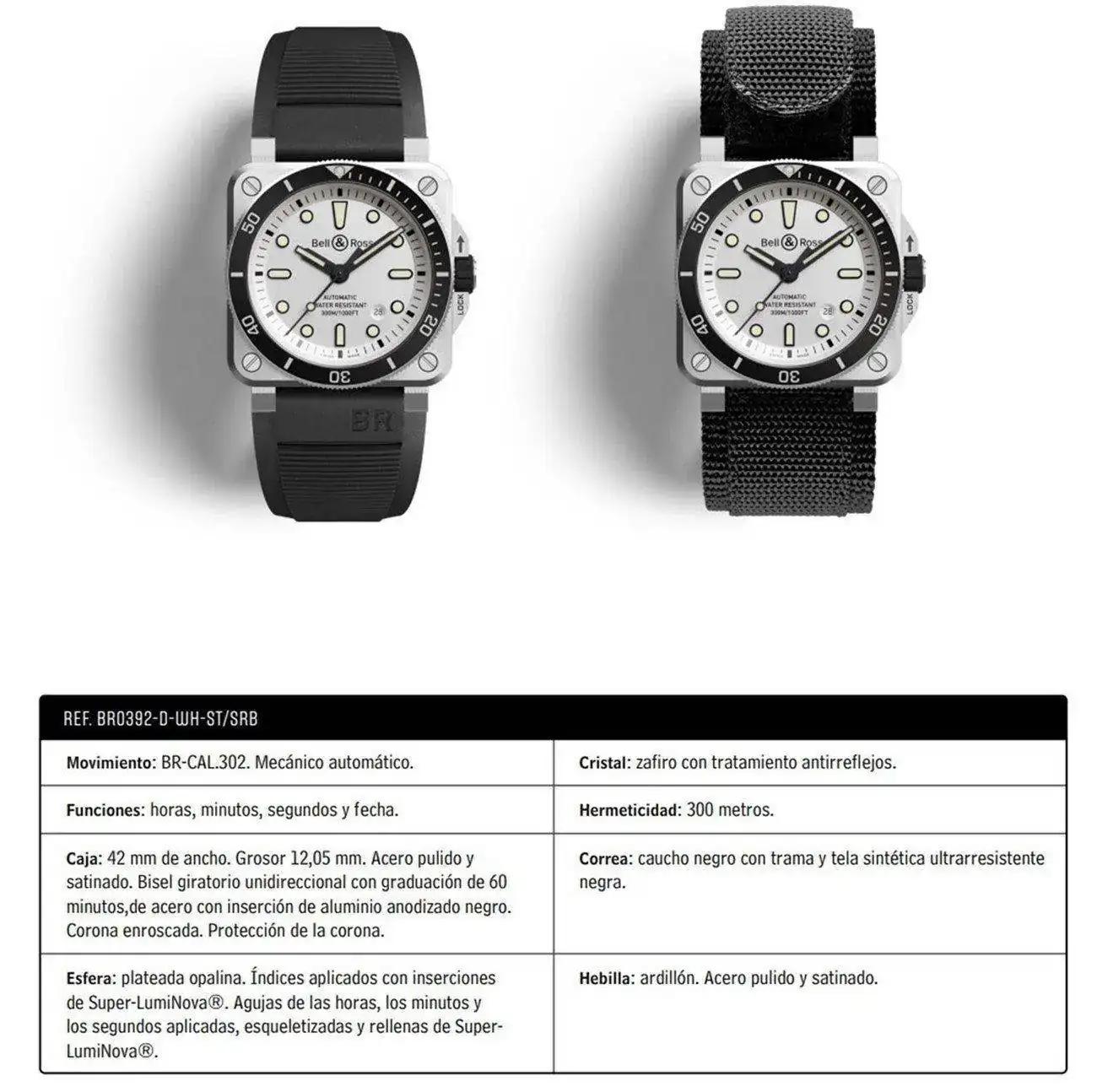 La de acero es el BR 03-92 Diver White, con una esfera blanco polar que quiere recordar el buceo en aguas realmente frías.
