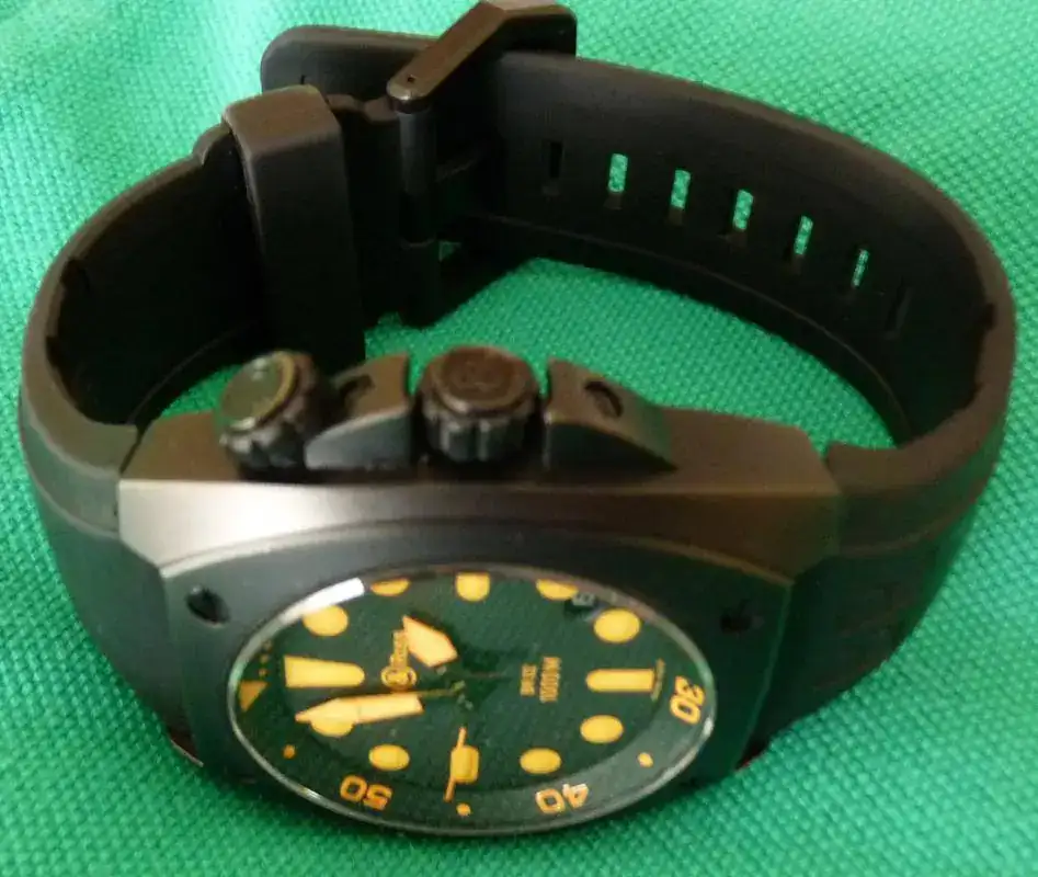 Hola, pongo a la venta este Bell & Ross Marine Carbon, estanco a 1000 metros, legible en la oscuridad, equipado con una válvula de descompresión y perfectamente adaptado a un uso profesional, su estado es excelente sin nada que reseñar y aunque solo tiene 3 años y medio ya se le ha hecho una revision completa.